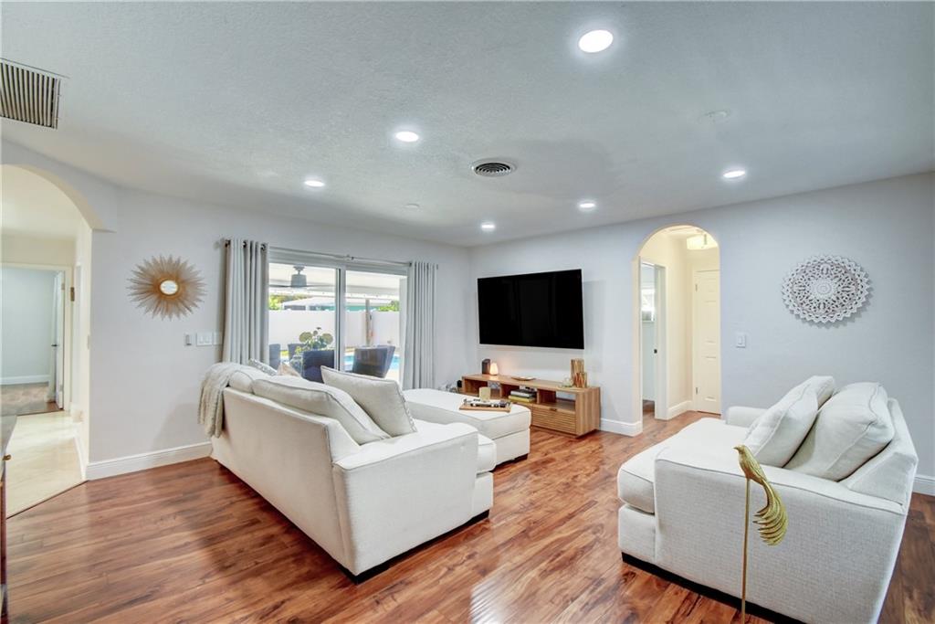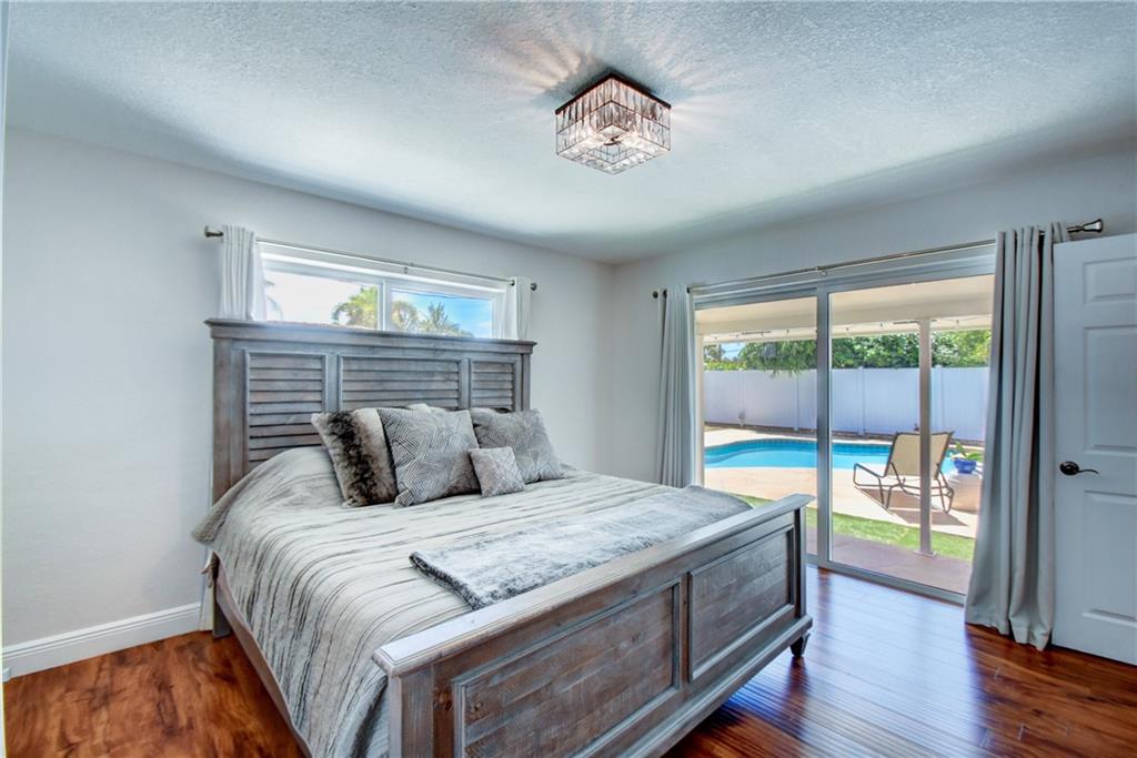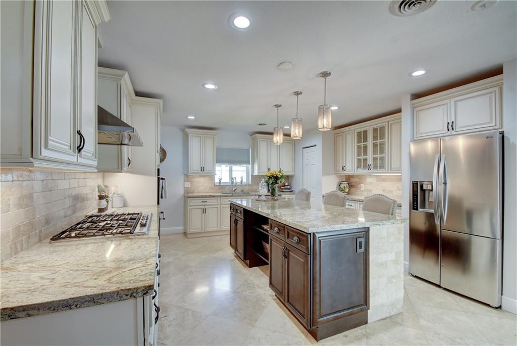 Fantastic home completely updated! Gourmet Chef's kitchen w/Forever Mark custom cabinets, granite countertops, professional grade Kitchen Aid double convection oven & KitchenAid Architect series II gas stove w/ upgraded gas service line & high powered exhaust hood. Large 96" island with under counter seating. Hurricane impact windows & doors. Dimmer lighting throughout house. Gorgeous baths with Crema Marfil marble counter tops & contemporary undermount sink. Dual flush elongated toilets. Custom plantation shutters. 2 car garage. Titan tankless water heater. Huge patio w/stamped concrete decking for entertaining with beautiful Nirvana heated pool with spa. New St Augustine grass through out front yard. Outdoor security motion sensor lights. Privacy PVC fence. Ready to move in!