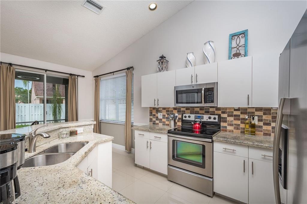 Your elegant 3 bedroom 2 bathroom home awaits you! This immaculate home is situated on a prime cul-de-sac lot with a fully fenced private oversized yard. Clean lines and neutral colors throughout add to the modern light and bright feel. Features include pristine tile floors, stainless steel appliances, granite countertops, covered screened porch, accordion hurricane shutters, crown molding, and more! Guard gated community walking distance from the neighborhood park and pool. Access to the most desirable A-rated public schools in Weston. This home is meticulously maintained, and it shows!