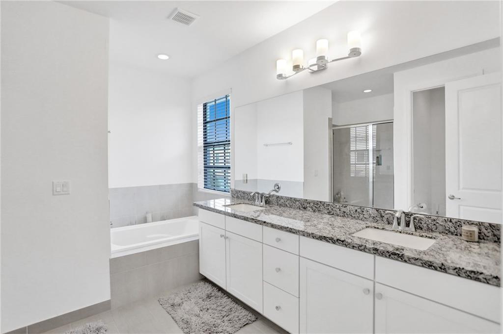 JUST REDUCED AND MAGAZINE BEAUTIFUL! THE DECORATING IS DONE ON THIS BEAUTIFUL HOME, JUST MOVE IN! Light, bright CORNER UNIT with lots of open beauty! 3 bedrooms, 3.5 bathrooms. Each bedroom an en-suite! Each bedroom exquisitely decorated and pristine. The open kitchen great room area is warm and wonderful. Features lots of white cabinets, granite counter tops plus a huge island with seating for family or friends. IMPACT DOORS, WINDOWS GARAGE DOORS. Spacious master suite with his and her walk in closets, designer bathroom with double sinks. Covered private balcony. Inside utility area, fire sprinklers and smoke detectors. Three car garage. Magnificent club house,heated pool, exercise room, children's play area. It's all here! Close to all shopping, restaurants, major highways.