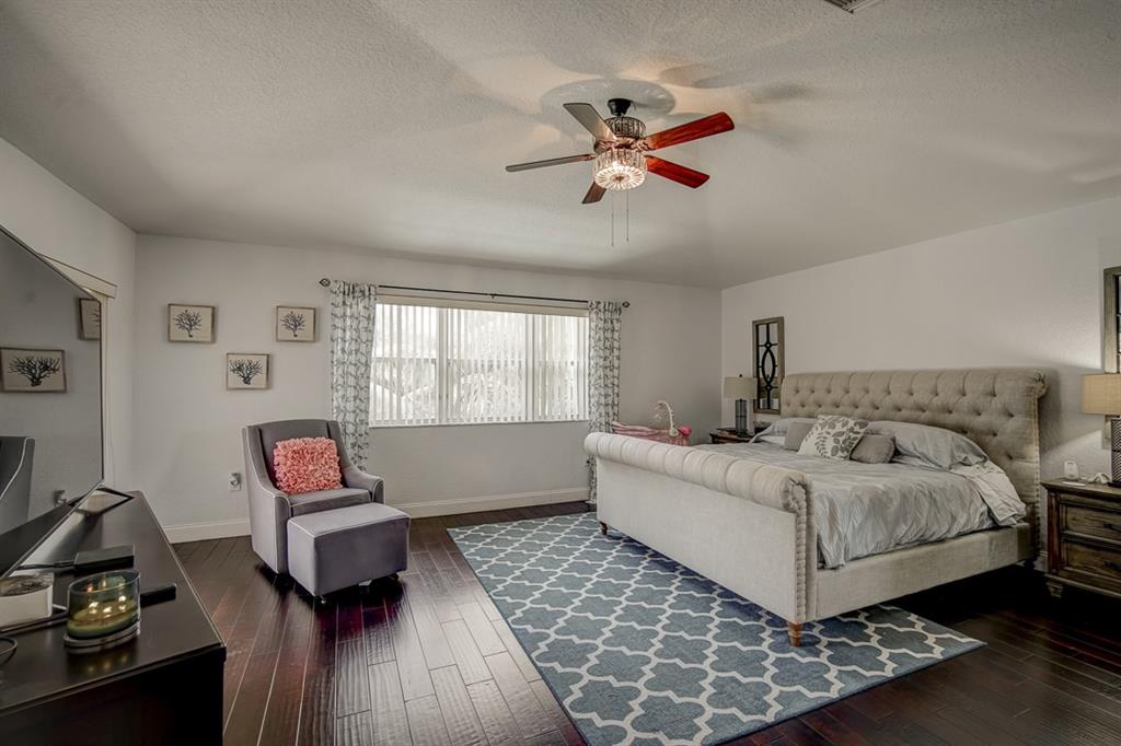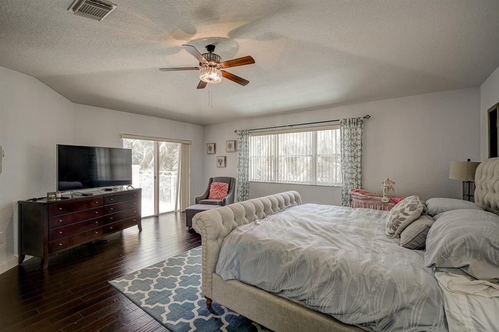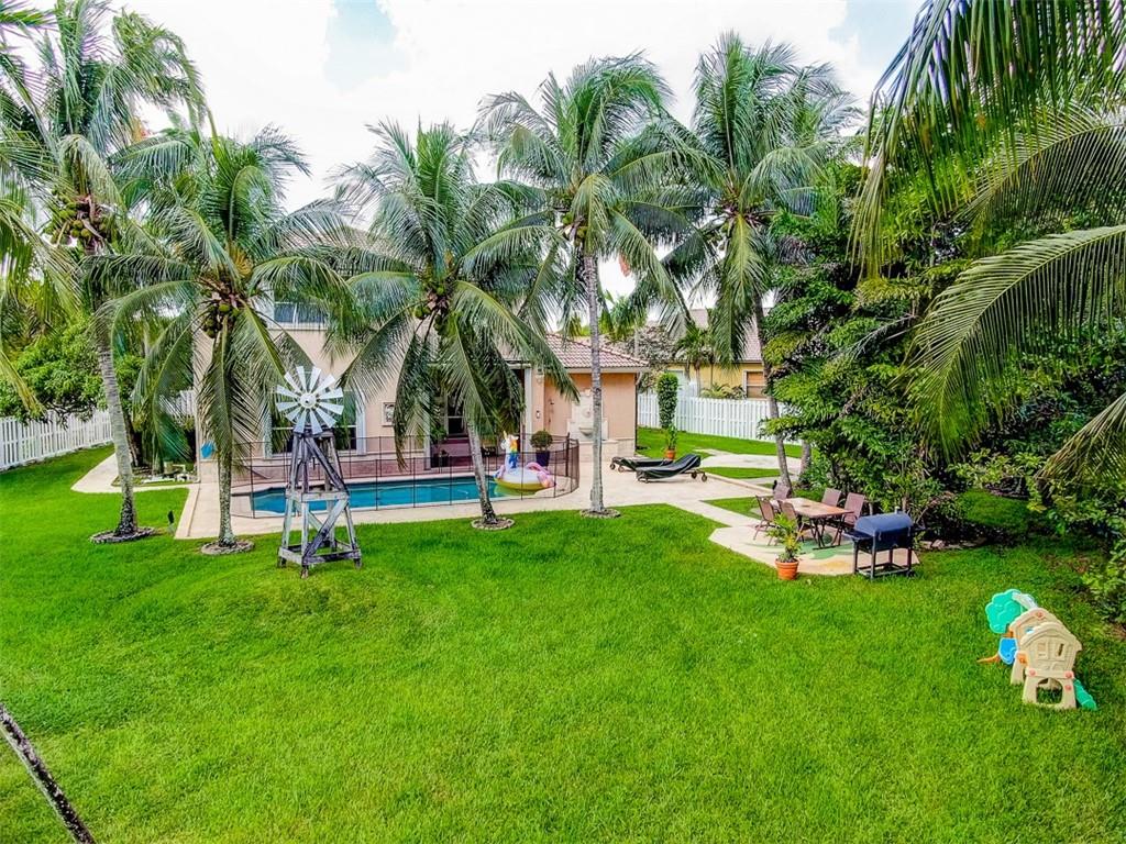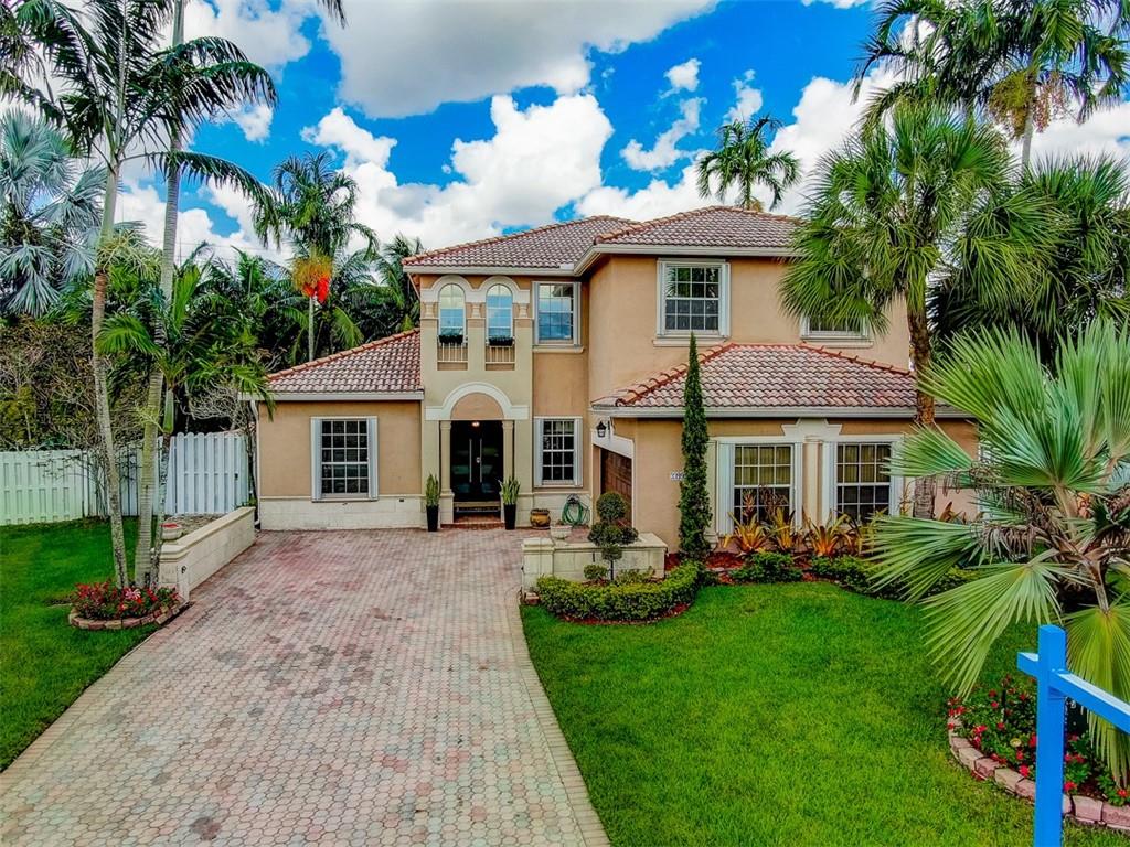 SPACIOUS & RENOVATED WATERFRONT POOL HOME WITH 5BED, DEN/OFFICE, SMALL STUDY AREA & 3.5BATH IN A 24HRS, GUARD GATED COMMUNITY. EXCELLENT CONDITION. NEW & UPGRADED KITCHEN WITH 42" CABINETS, CENTER ISLAND & STONE COUNTERTOPS. 2 RENOVATED BATHROOMS, NEW PVC PLUMBING, WOOD FLOORS THROUGHOUT THE ENTIRE HOME & STAIRCASE, CUSTOM FRONT DOOR, ACCORDION SHUTTERS, INTERCOM, MASTER BEDROOM W/SITTING AREA AND BALCONY. 1BED/BATH + OFFICE DOWNSTAIRS. SUPER FANTASTIC, OVERSIZED FENCED LOT W/POOL & CANAL ACCESS TO A WILD PRESERVE/LAGOON. FRUIT TREES & DRIVEWAY TO FIT 6 CARS!... VERY NICE COMMUNITY & EXCELLENT LOCATION.