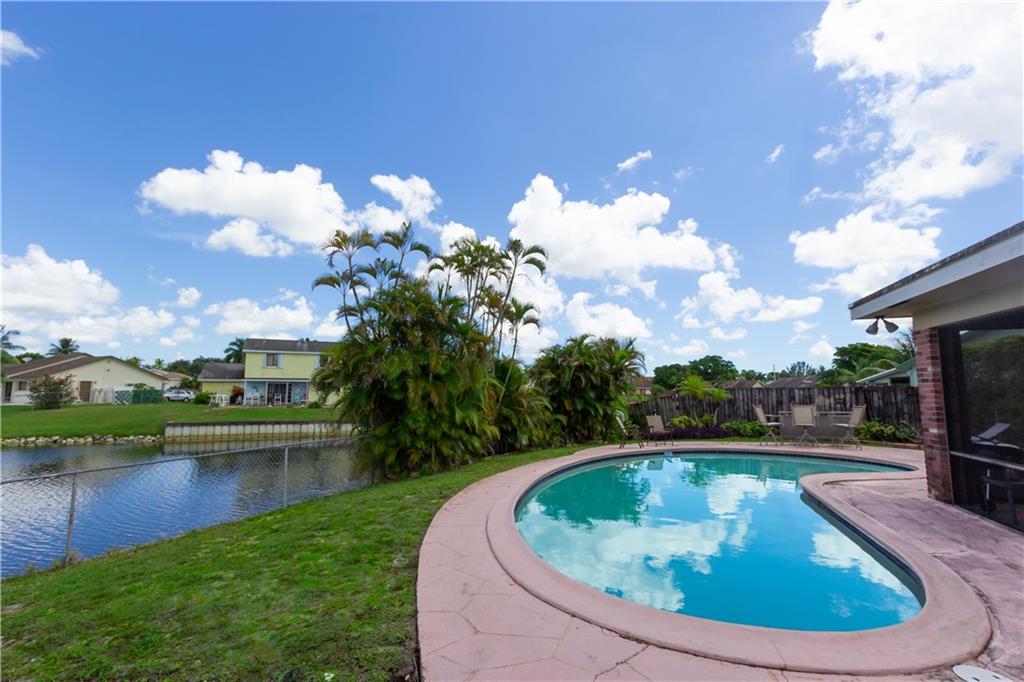 Beautiful 3/2 waterfront pool home located on a quiet cul de sac in Cooper City's Timberlake. Sit by the pool and enjoy the sunset over the vast lake. The yard with its waterfront point lot has a custom man made sea wall with 150+ feet of waterfront. The home boasts a split bedroom plan for privacy, an upgraded kitchen with granite and stainless steel appliances, open to the pool area and family room and a large living room, dining room, and family room, perfect for entertaining. The roof was replaced in 2011 and the a/c in 2015. Cooper City has all A rated schools and is located near all major highways, restaurants, shopping, airports, places of worship and the beach. Cooper City also boasts many parks for your kids and pets to play. Make an appointment to see now! This one will not last