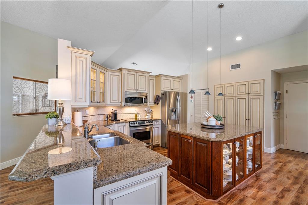 This Home was once the builders model for North Springs! Sellers have enhanced it even more!! As you enter you're greeted with voluminous ceilings that give spaciousness. High Quality Laminate Flooring throughout whole home w/High Baseboards. Upgraded Kitchen shows off an oversized island w/hidden outlets and illuminated glass cabinetry. Integrated Bosch Dishwasher, Professional Series Oven, Pantry Doors finished with matching cabinetry with pull out drawers, Bluetooth Lighting, Granite Counters with Tumblestone backsplash, Two Sinks Two Disposals!! Master Bath upgraded w/Quartz Counter, Beautiful stand alone tub, Hansgrohe Shower fixtures, Herringbone Floor Tile and Bluetooth Ceiling Speaker w/Quiet Fan and Light. Oversized Screened Patio overlooking Pool and large corner lot yard.