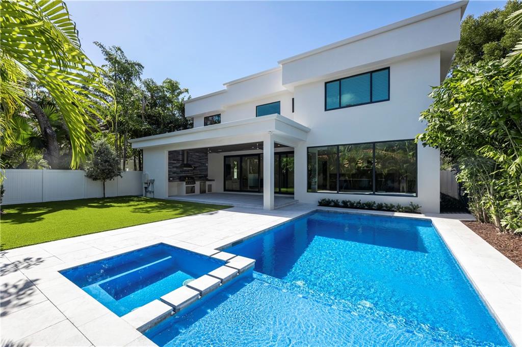 NEW CONSTRUCTION(2020) 5 bedroom/5 bath contemporary home with 4,150 sq ft of A/C living space on an "oversized" lot in the heart of prestigious Rio Vista. Complete Smart Home includes indoor/outdoor sound system & alarm, cameras, automated window coverings & lighting. Lushly landscaped backyard with heated saltwater pool & spa. Large covered patio with full summer kitchen. Massive great room with Chef's kitchen, huge island, awesome walk-in pantry, wet bar & wine cooler. First floor bedroom en-suite. Stunning floating wood and glass staircase leads to three large bedroom en-suites with walk-in closets, laundry room and a spectacular master suite with two magnificent walk-in closets. Energy efficient home includes Generac generator, LED lighting, gas appliances and much more!
