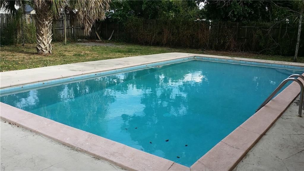 3/2 with one car garage; below ground pool; NEW 2020 shingle roof and 2020 flat roof; ceramic floors and wood floors ; open concept; all white kitchen; newer stove/oven and newer refrigerator; AC only a few years old; the pool was recently resurfaced; home is on septic; municipal city water; shutters; walk to golf course; NO HOA! fully fenced;