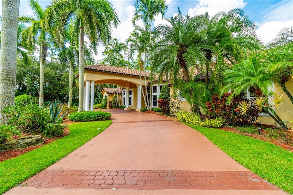 Coral Springs most exclusive community Whispering Woods. This is the ONLY home currently listed for sale inside this community. MUST SEE! Sprawling estate on 1.5 acres with 5 bedrooms, 4 full baths, 3-car side entry garage and porte-cochere. Circular Driveway fits 22 Cars. Split bedroom floor plan with hurricane protection on all windows and doors. 20x40, Heated, salt water, Open pool and spa. Family room with fireplace, and built in entertainment center. Master with sitting area and new marble master bath with his and hers dressing areas. Crown molding and all 8' doors throughout. Upgraded kitchen with quartz countertops, stainless steel appliances and center island. New roof in 2010, with repairs in 2017