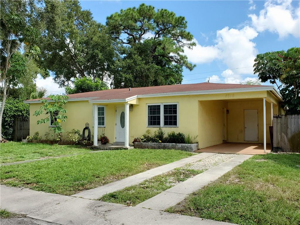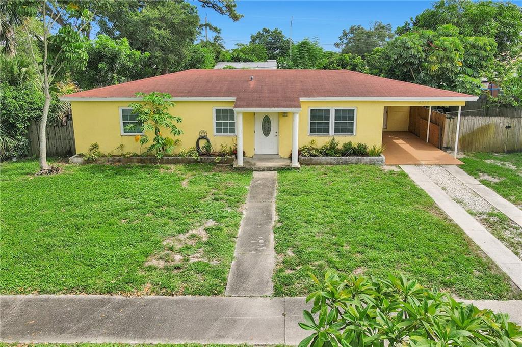 Charming 3/1 in Plantation Country Club Estates. This house is ready for new owners! New roof in 2015 (permit main shingle & flat) A/C installed 2015! Updated kitchen w/wood cabinets, granite counters, gas stove & s.steel appliances. Large family rm w/wraparound windows (permitted hurricane impact), wood beam ceilings & tile flooring. Spacious bedrooms w/partial casement windows. White subway tile, neutral flooring and frosted full size window lets the light shine into the updated bath. Polished terrazzo flooring in excellent condition in BR's, kitchen & formal liv area. Carport w/sep. laundry & utility rm w/new gas hotwater heater. HUGE lot 7500 sqft w/pavers, outdoor shed & room for pool. Plenty of space to park a RV/Boat through dble door side gate. 2019 A rated elementary.