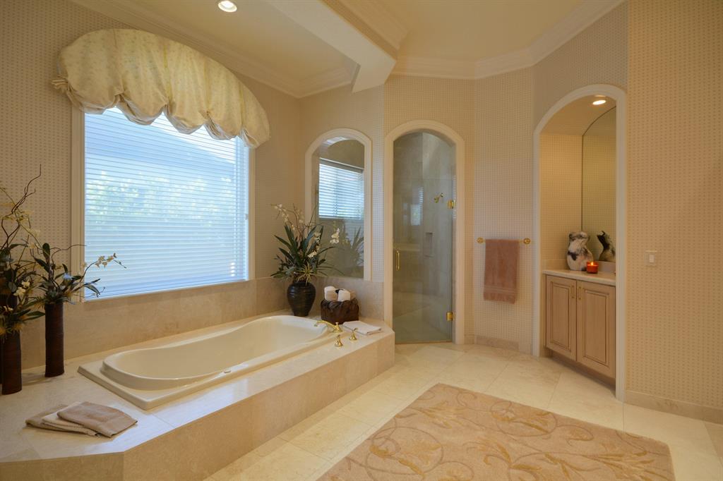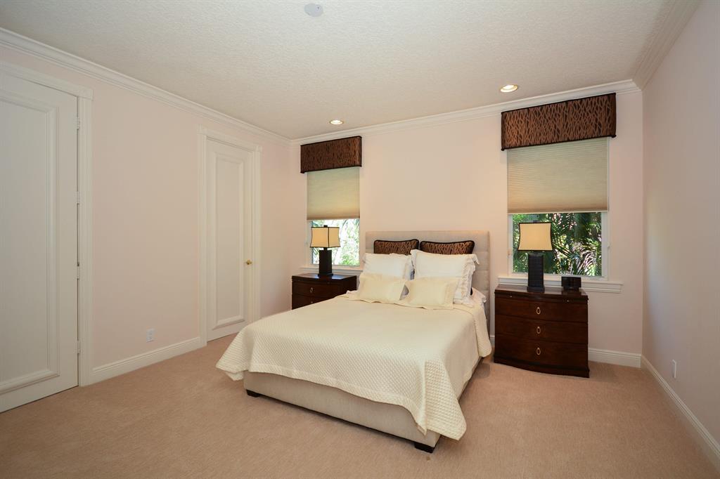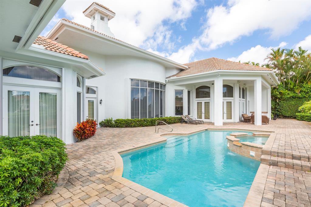 Situated on almost 1/2 acre, this luxurious estate with over 7,000 sq ft of living area enjoys spectacular lake and golf course views. The first floor offers a stunning living room, dining room, chef's kitchen, large family room, home theater, library, spacious master suite with separate retreat room and his and her master baths and 2 additional en suite bedrooms. The second floor offers an entertainment area and 3 bedrooms with adjoining baths. Outdoors, a lushly landscaped resort style pool and loggia complete the estate. The information herein is deemed reliable and subject to errors, omissions and changes without notice. All measurements are approximate.