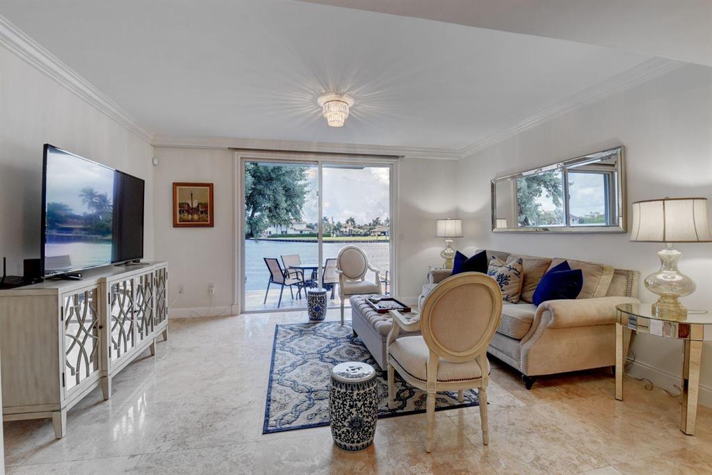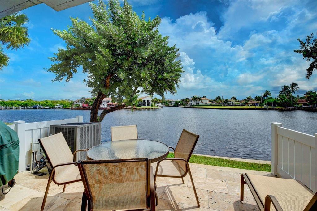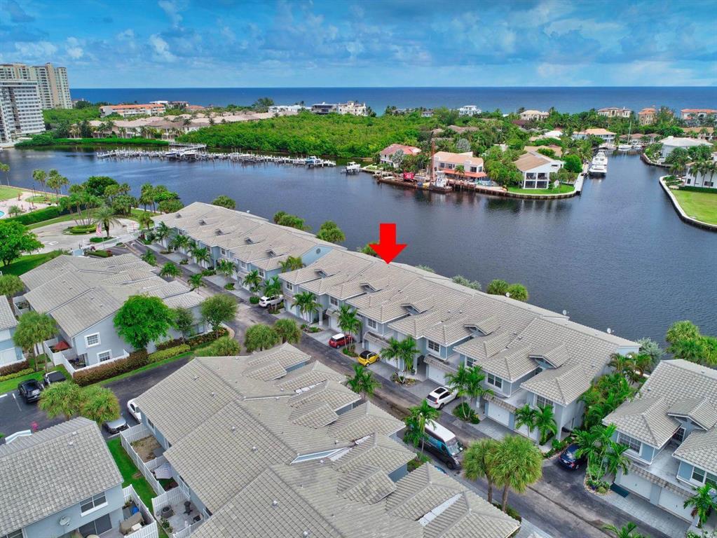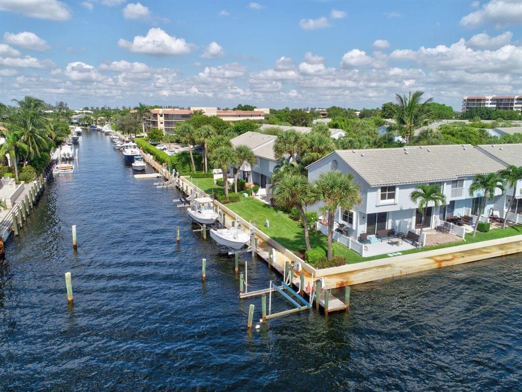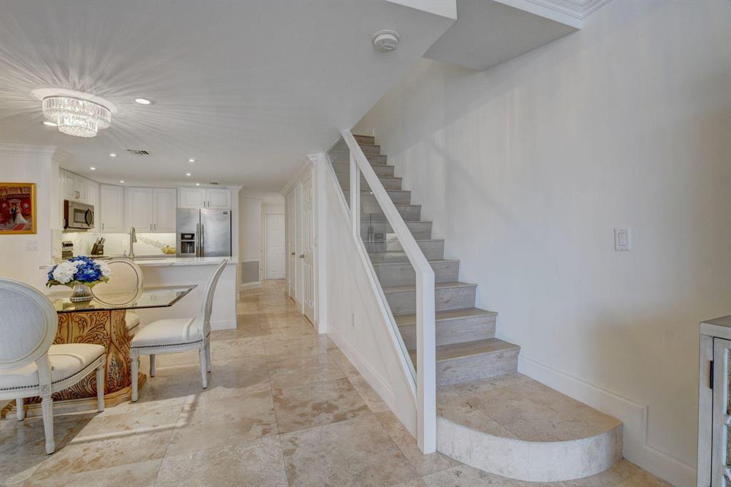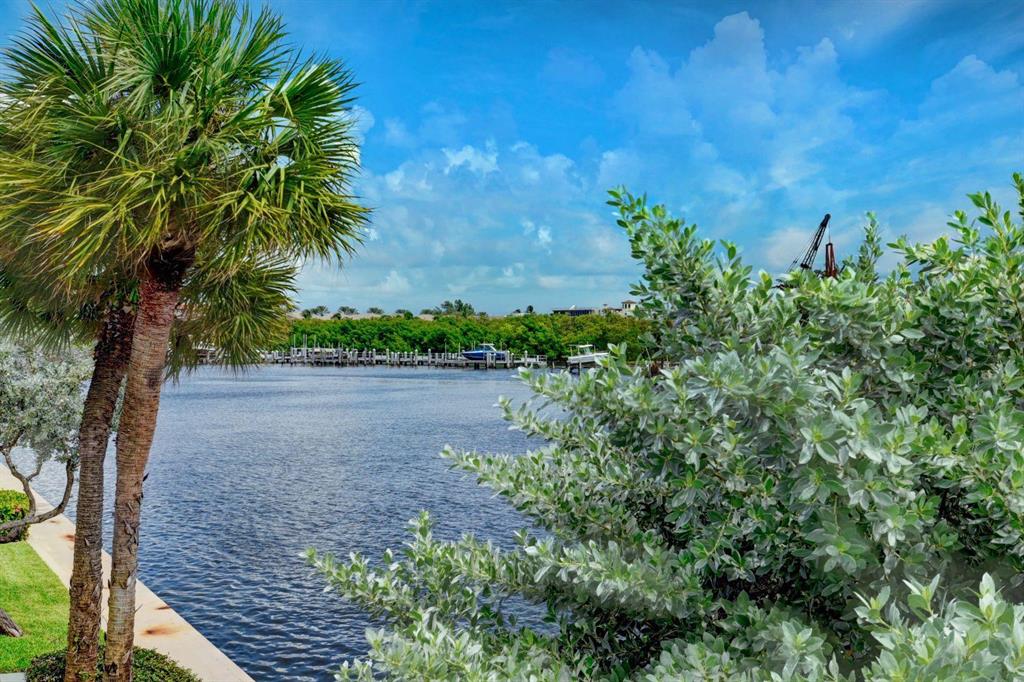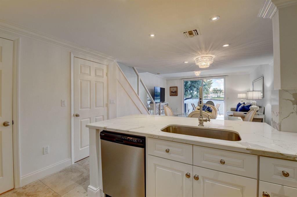 Picture-perfect Intracoastal Florida townhouse with new renovations. Elegantly decorated in soothing neutrals, the views are spectacular from the new travertine deck. Beautiful white kitchen with new quartz countertop and backsplash, SS appliances. Upstairs, the Owner's Suite boasts newly expanded bathroom with double sinks set in rich quartz countertop, porcelain floors and oversized spa-like shower with rainfall and handheld fixtures. Also added a beautiful new custom built-in closet. Interior freshly painted. Roof 2017. Upgrades include crown molding, new stairway detailing and banisters, marble floors on first level, grey/white plank style flooring on stairs and second level, louvered shutters, and electric shades in Living Room & Owner's Bedroom. Boat Dockage upon availability, see