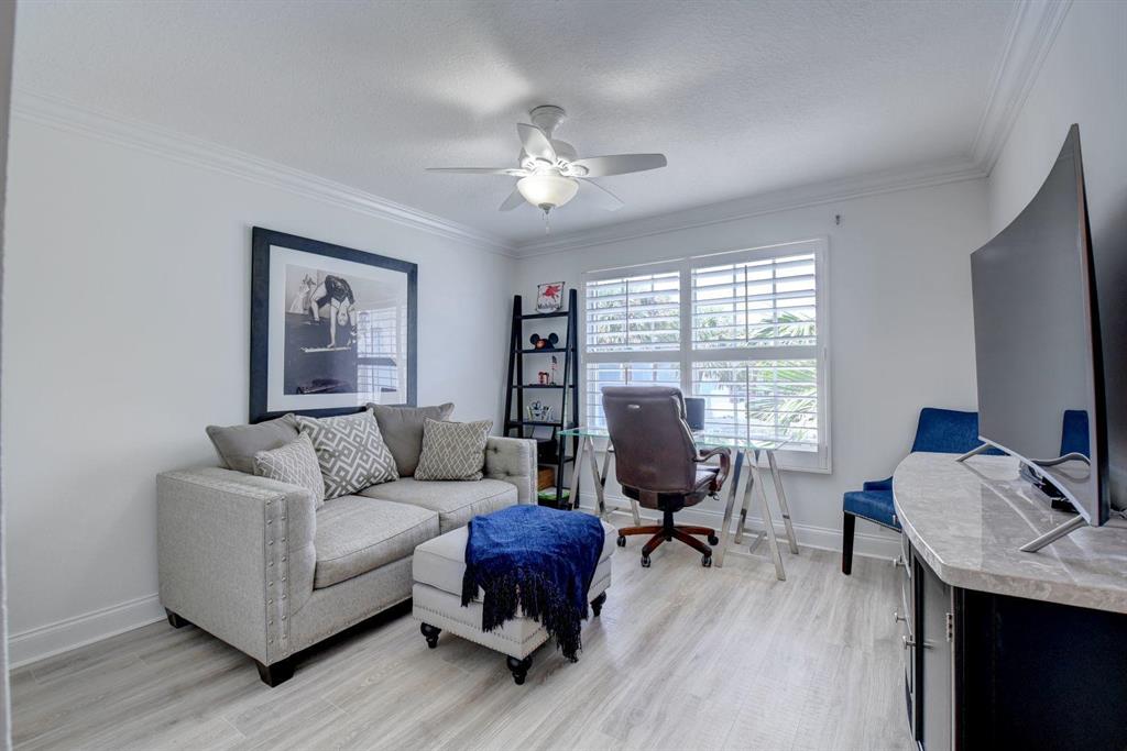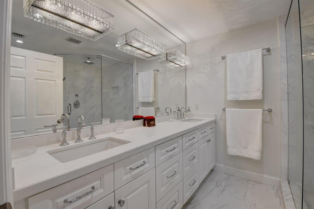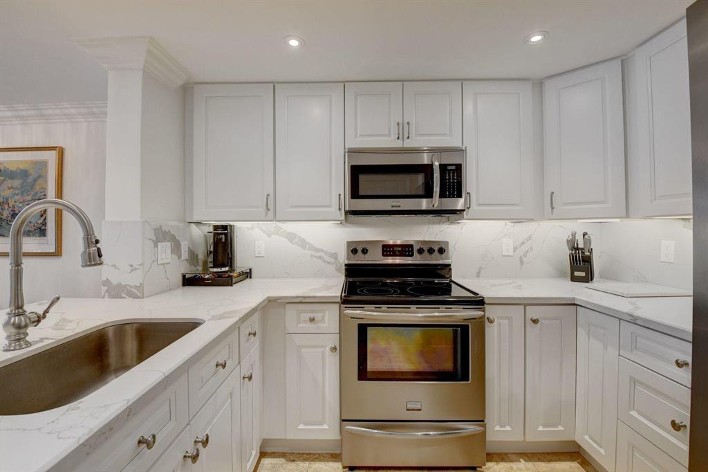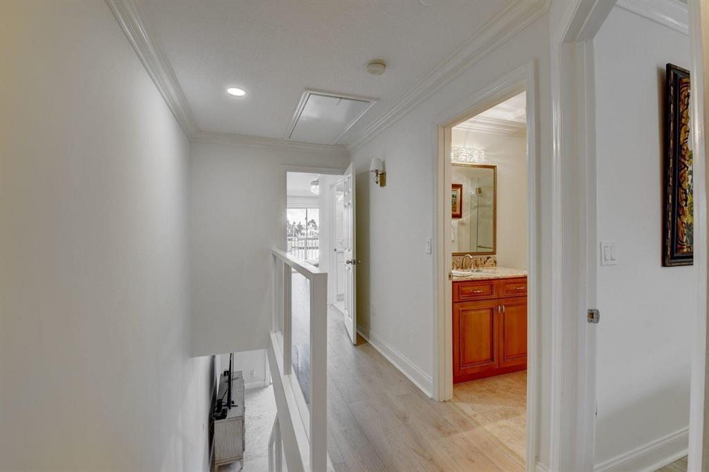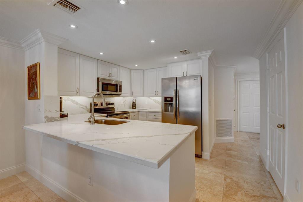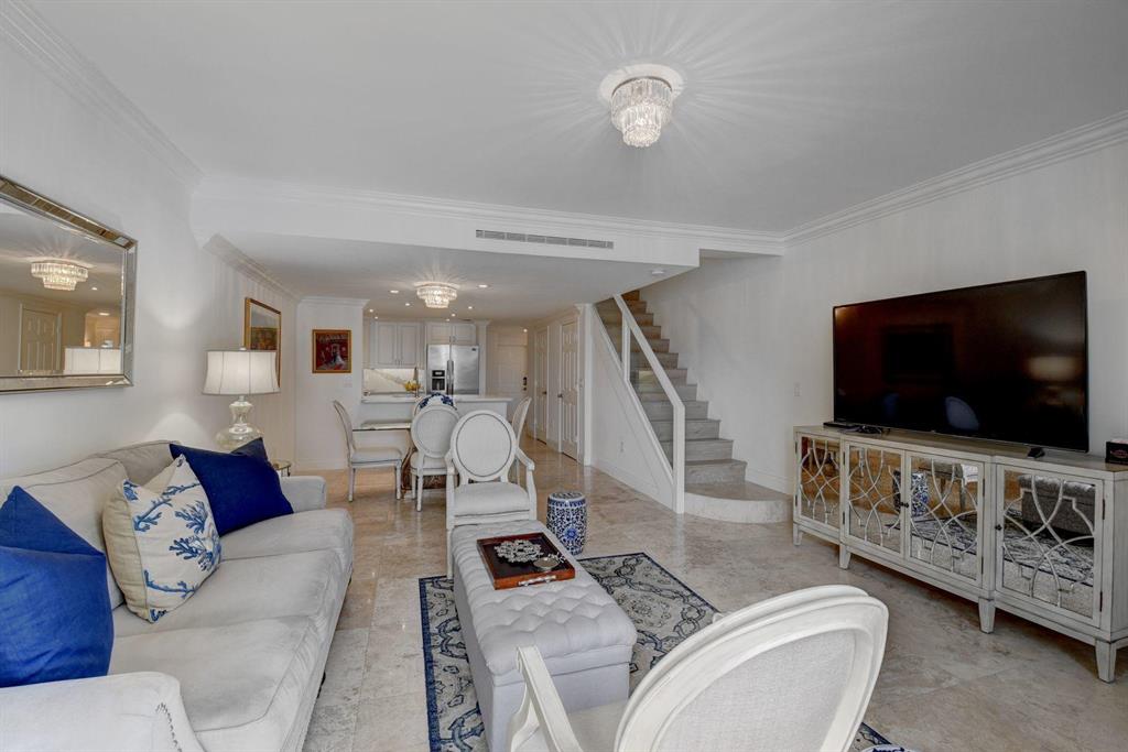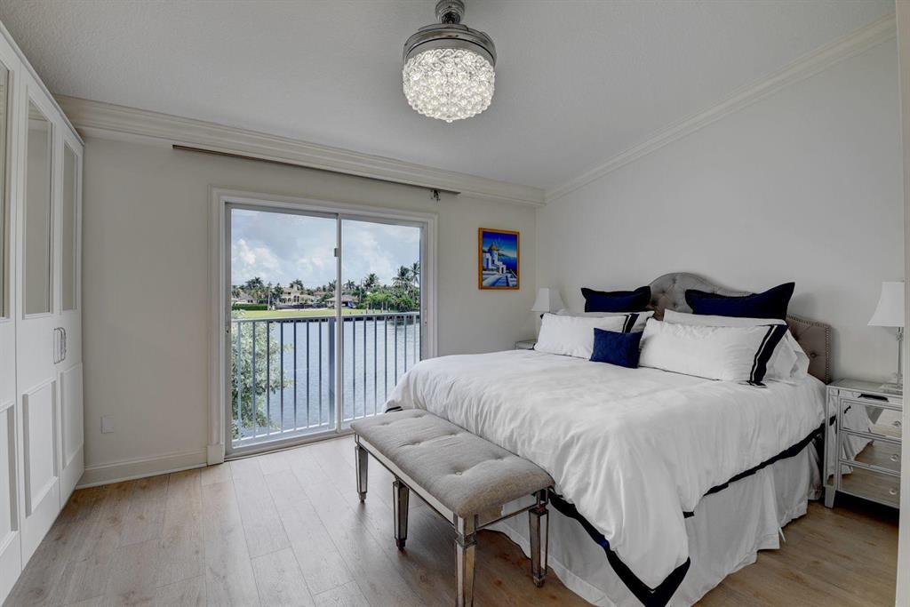 Picture-perfect Intracoastal Florida townhouse with new renovations. Elegantly decorated in soothing neutrals, the views are spectacular from the new travertine deck. Beautiful white kitchen with new quartz countertop and backsplash, SS appliances. Upstairs, the Owner's Suite boasts newly expanded bathroom with double sinks set in rich quartz countertop, porcelain floors and oversized spa-like shower with rainfall and handheld fixtures. Also added a beautiful new custom built-in closet. Interior freshly painted. Roof 2017. Upgrades include crown molding, new stairway detailing and banisters, marble floors on first level, grey/white plank style flooring on stairs and second level, louvered shutters, and electric shades in Living Room & Owner's Bedroom. Boat Dockage upon availability, see