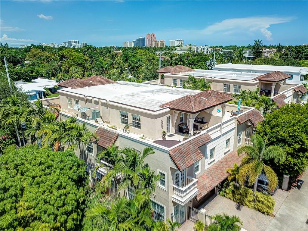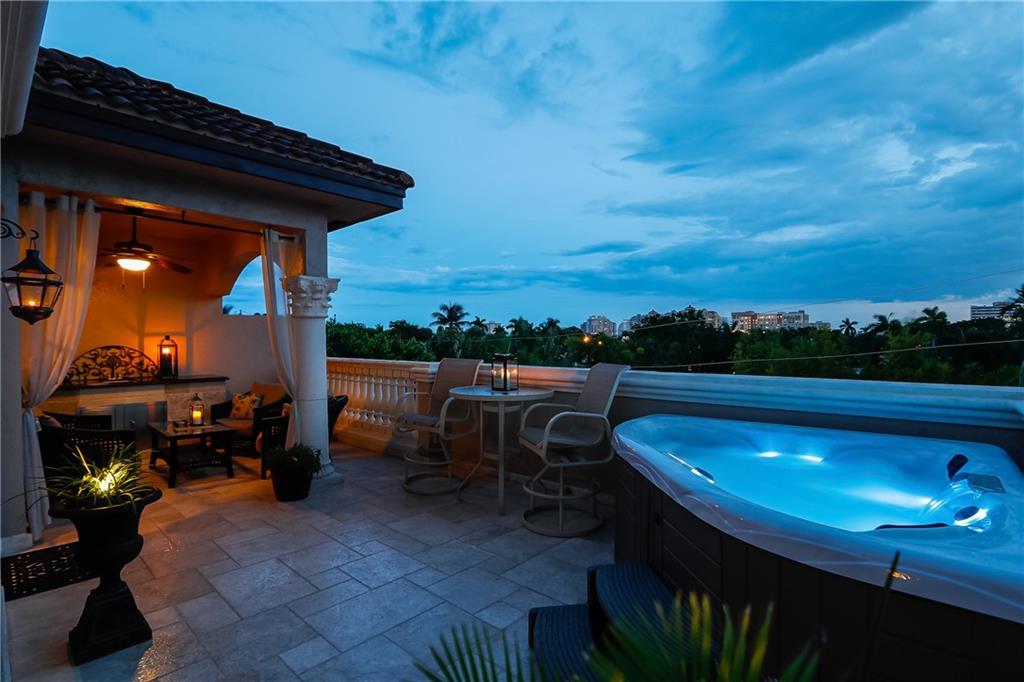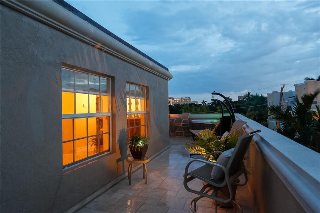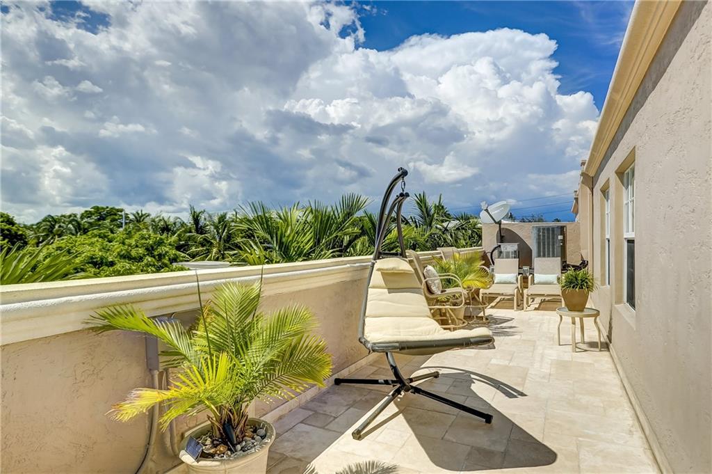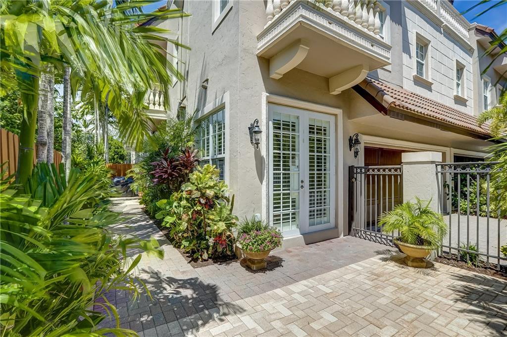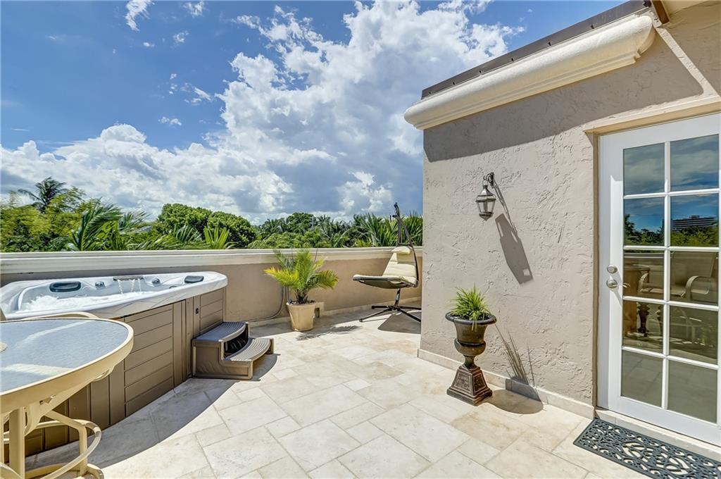 Pristine Coral Ridge tri-level townhome with 2-car garage and impact doors and windows offers three levels of French cut marble flooring throughout and curved marble staircase. Ground living area includes kitchen with high end finishes, wet bar, main living area and half bath. Level two opens on a loft with Juliet balcony that's positioned between the master with two walk-in closets and the second bedroom with enormous walk-in closet, 2nd full bath and conveniently located laundry. Third level features large family room or optional 3rd bedroom and full bath that leads to marble-floored rooftop terrace, sunset views, wet bar and hydrotherapy spa. New washer/dryer, new microwave, new Trane A/C, plantation shutters, crown molding, gated courtyard with fountain, lush landscaping,walk to beach