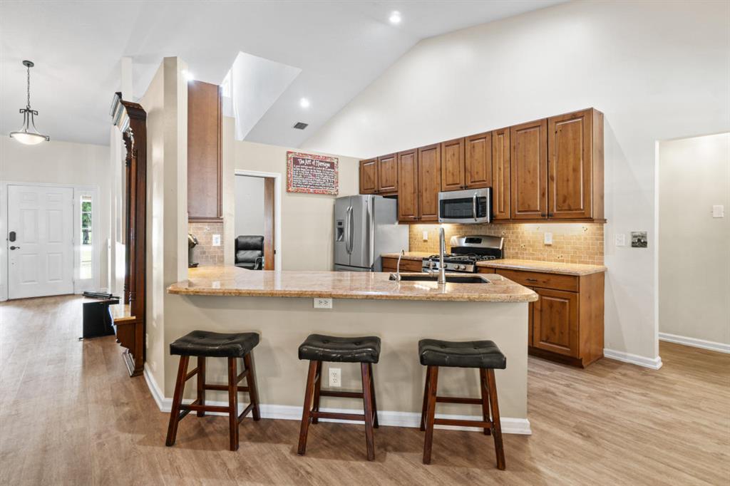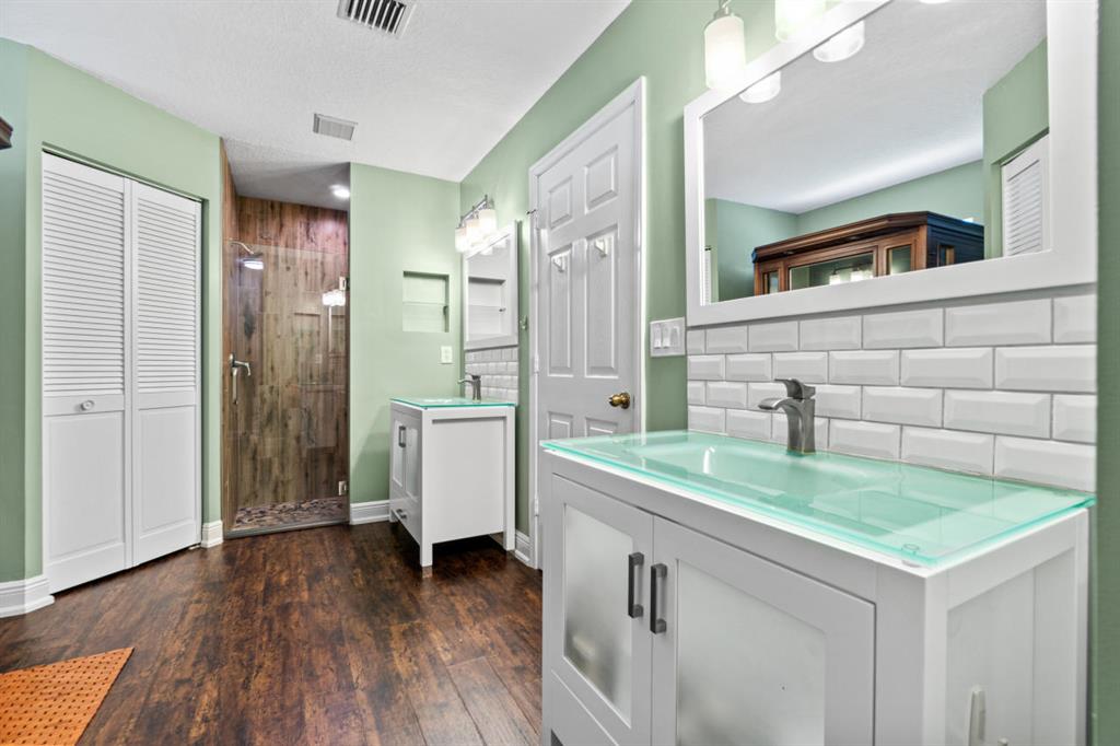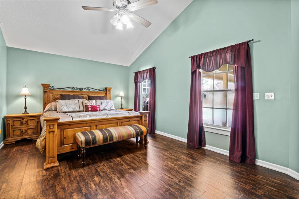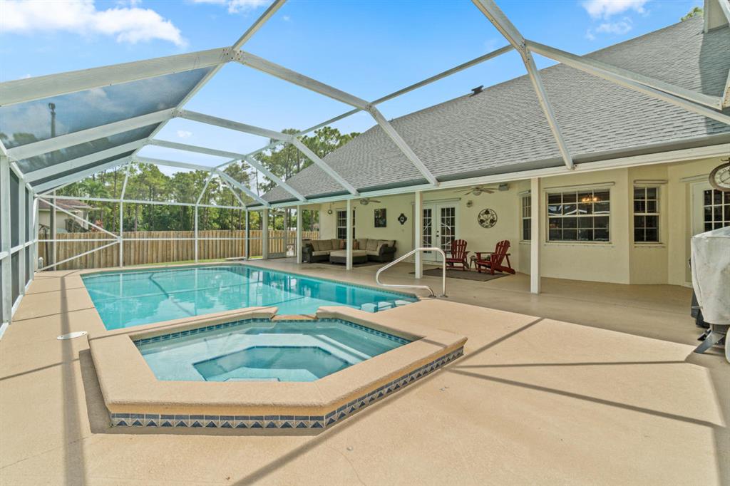 Ready to social distance on your own acreage? This is a 4 bedroom 2.5 bath Colonial style home on 1.3 acre corner lot. Enjoy the screened in swimming pool with hot tub (which has a gas heater), full privacy fenced yard, regulation size lighted and sanded volleyball court, and endless opportunities in sodded yard. The interior boast an open floor plan with vaulted ceilings. Owners bath was completely remodeled in 2017 and includes dual vanities, his and her walk in closets, and two person dry sauna. Large game room with closet with an adjacent room with French doors perfect for home office. Kitchen has been upgraded with custom granite countertops and solid wood cabinets. Roof and dual A/C were replaced in 2018. Don't miss the opportunity to own this beautiful home!