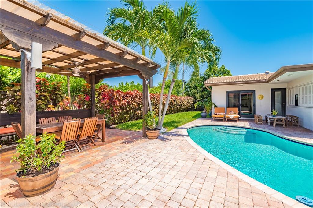 TIMELESS SANCTUARY IN IMPERIAL POINT. This large and tranquil home features 3BR/2BA, Pool, Office area, Paved Circular Driveway, Laundry Room and Garage. Enjoy an open floor plan with a separate dining area. A custom built storage bench under the bay windows is perfect for pillows & blankets . Hard bamboo floors throughout, Hard Wood Doors, updated bathrooms, led recessed lighting and impact windows and sliders (except in kitchen) to the pool area give this exceptionally maintained home a calm ambiance. Relax by the heated pool (NEW HEAT PUMP), dine al fresco in the gazebo. Make this unique sanctuary your perfect Florida home. NEW WATER HEATER ORDERED & WILL BE INSTALLED BY MID SEPT. Imperial Point is 2 miles to the beach, near schools, shoppes, hospitals and restaurants. SEE VIRTUAL TOUR.