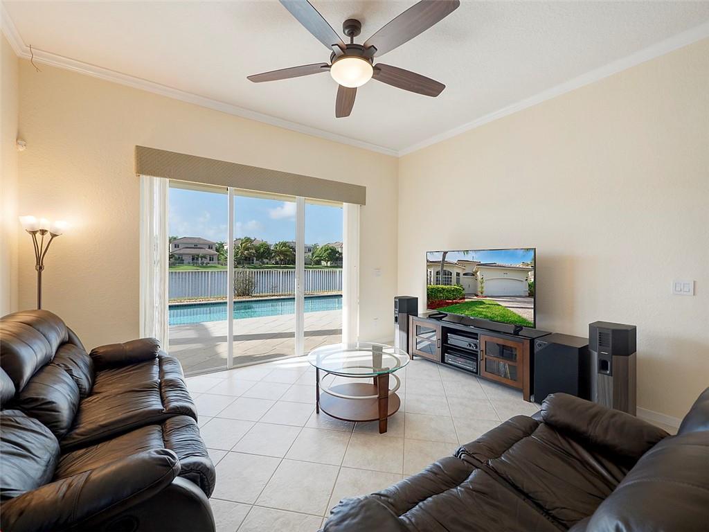 Come relax and enjoy the best of Florida living! This beautiful 3 bed room 2.5 bath, lake front pool home is the perfect retreat after a long day at work. This home features a spacious open floor plan with lots of natural lighting, an upgraded kitchen with granite counter tops and 42-inch cabinets, elegant tray ceilings, crown molding throughout the main living area, California closets in the master bedroom, a large covered patio with a retractable awning and a serene solar heated salt water pool overlooking a gorgeous lake. Laguna Isles amenities include: community pool, club house, playground, tennis courts, exercise room, guarded gate and more.