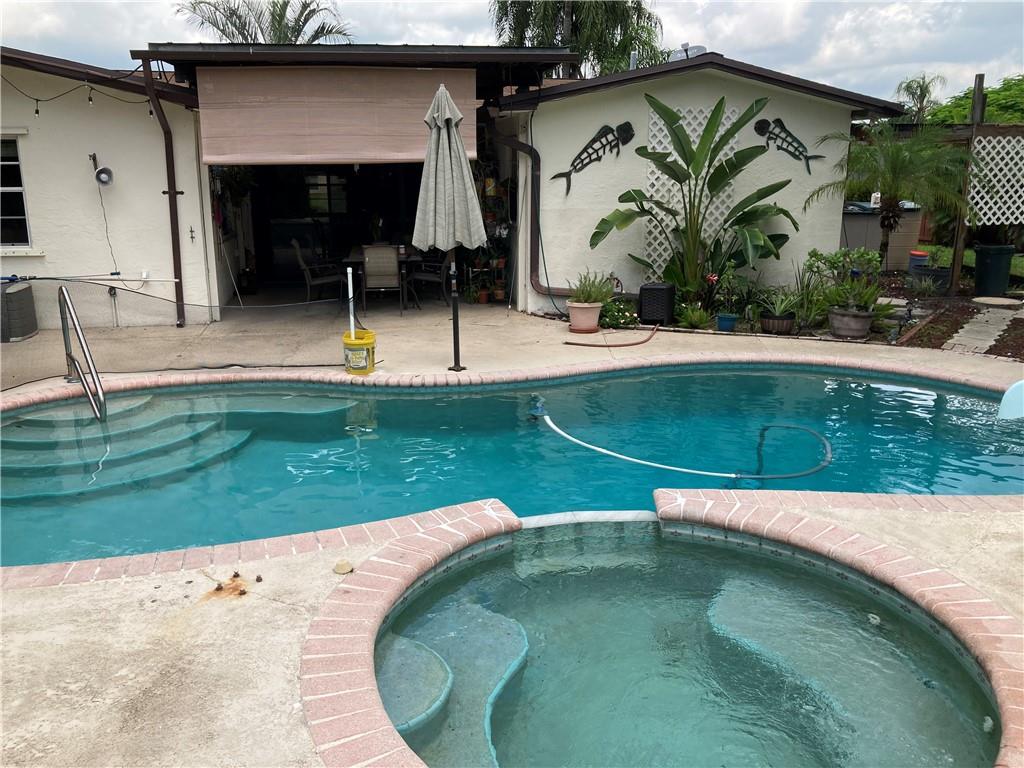 Conveniently located less than 2miles from Hard Rock Casino/Hotel..BRING YOUR RV/ BOAT to this spacious 4 bedroom 3 bath pool home in Davie. Spacious upgraded kitchen with wet bar graced with granite counter top. Modern plank tile from foyer throughout the home except the family room that has large 20x20 tile flooring. In addition split bedroom floor plan ,this property has 2 MASTER SUITES which makes it perfect for an in-laws quarters. The house is cooled by 2 A/C units, one installed in 2014 and the other 2019. Enjoy the luxury of your private pool with spa and a grill area. Property has 1 A/C car garage which was used as an office and an additional 12 foot door huge garage. With this home you will have all the storage you need along with the convenience of hurricane panels. .