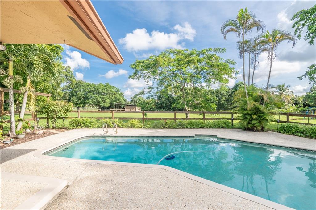 Country Oasis in the Heart of Broward. 4 Bedrooms 3 Full Bathrooms and a Split Floor Plan, Hobby Room/ Home Office Area, Huge Attic for Extra Storage, 2 Car Garage with Swimming Pool and Horse Pole Barn with Paddock in one of the Most Desirable areas of South Florida - The Town of Davie 2 Blocks from Tree Tops Park https://www.broward.org/Parks/Pages/park.aspx?=40 and the Davie Trail for Horseback Riding https://www.davie-fl.gov/480/Linear-Park-Trail This home is open and bright and has a real working fireplace. Bring all your Toys! NO HOA! RV's, ATV's, Boats all welcome. This home checks all the Boxes. Hurry, Won't Last Long in This Market!!!