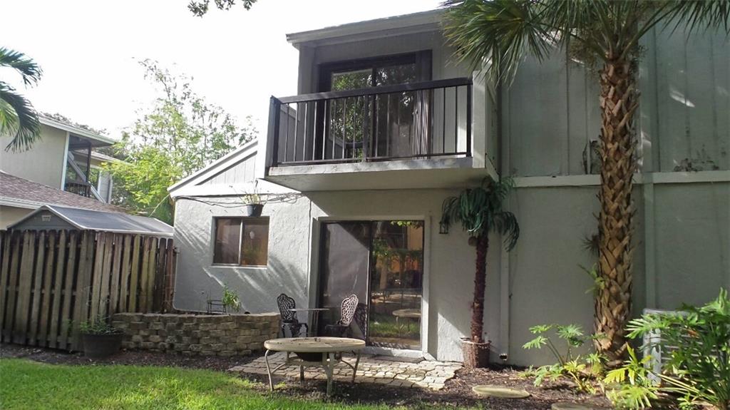 DON'T MISS THIS ONE!!! This modern 2/2 Townhome features newer stainless steel appliances, updated cabinets, backsplash, and granite counters. Ceiling has knockdown texture, crown molding and recessed lights. Kitchen has vaulted ceilings with skylights. Walk into your private front garden patio, enjoy your back porch from dining area or balcony from Master bedroom upstairs. Tile floors downstairs. Laundry room downstairs. One full bathroom upstairs and one full bathroom downstairs. Nest thermostat and shed stay with house. Private driveway for 2 cars. Golf course, pool and tennis close by. Association covers the Roof.