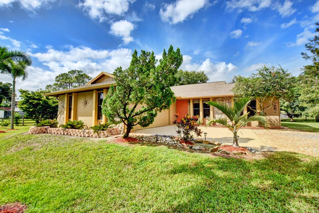 Gorgeous landscaped 1.29 acres in WPB. Close to RPB Pines Natural Area. Freshly painted 3/2 home with attached garage features generous sized bedrooms and a bonus area, Stainless Steel Appliances in Kitchen. Large Master Suite with beautifully upgraded master bath and large walk-in closet. Enjoy a variety of fruit such as Dragonfruit, Mango, Avocado , White Mulberry, Loquat and Sapodilla from numerous trees while sitting on your oversized back patio. Plenty of room for all your toys. 3.5 ton AC 2019, roof 2005, Well Pump 2019 and recently cleaned and serviced Septic Tank. NO HOA! NO POLY PIPES.