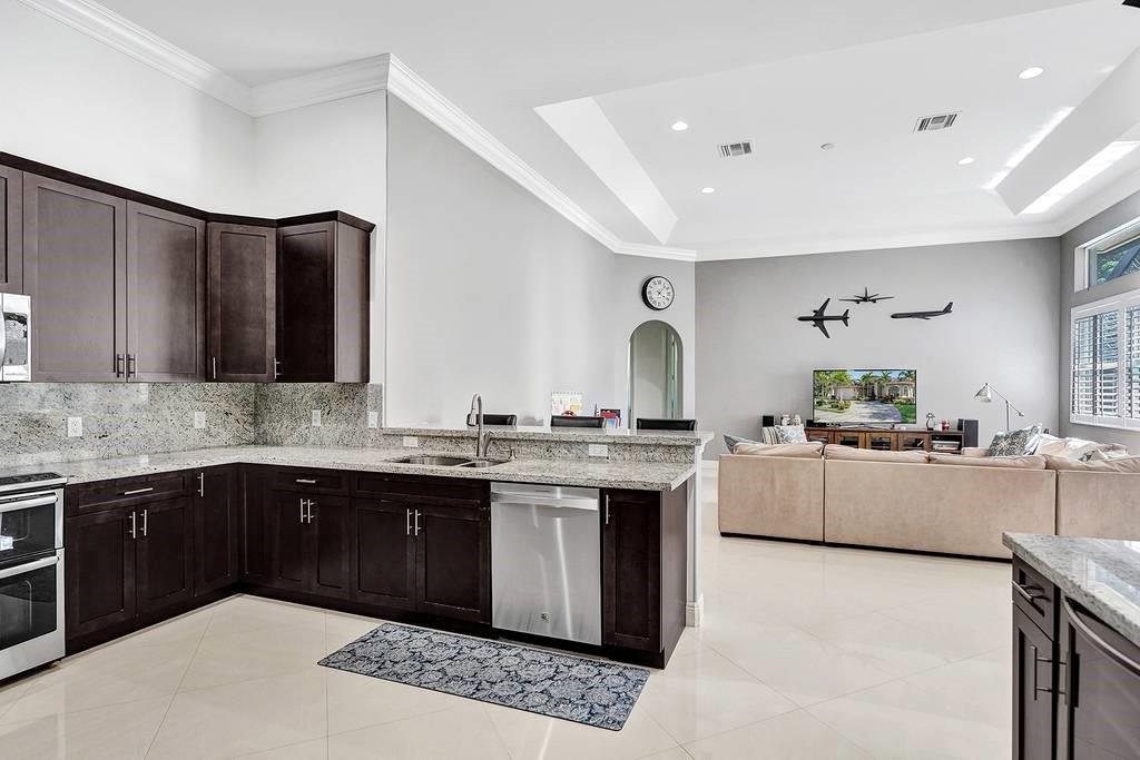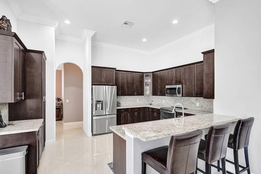 Stunning 4 bedroom 3 bath pool home located in Pine Island Estates. Built in 2014 this highly upgraded and rarely available one story floor plan has it all. Interior features include upgraded kitchen with 42 inch wood soft close cabinets, granite countertops, stainless steel appliances including double oven and wine refrigerator. Large open triple split floor plan with decorative crown molding, plantation shutters, porcelain tile in living area and brazilian wood flooring in bedrooms. Spacious master suite with 2 walk in closets, master bath with double sinks, shower, jacuzzi tub. Dining room with decorative coffered ceiling. Outdoor screened in private back yard with salt water pool and spa. Impact windows and doors. See attached feature list to see all the detail upgrades to the home.