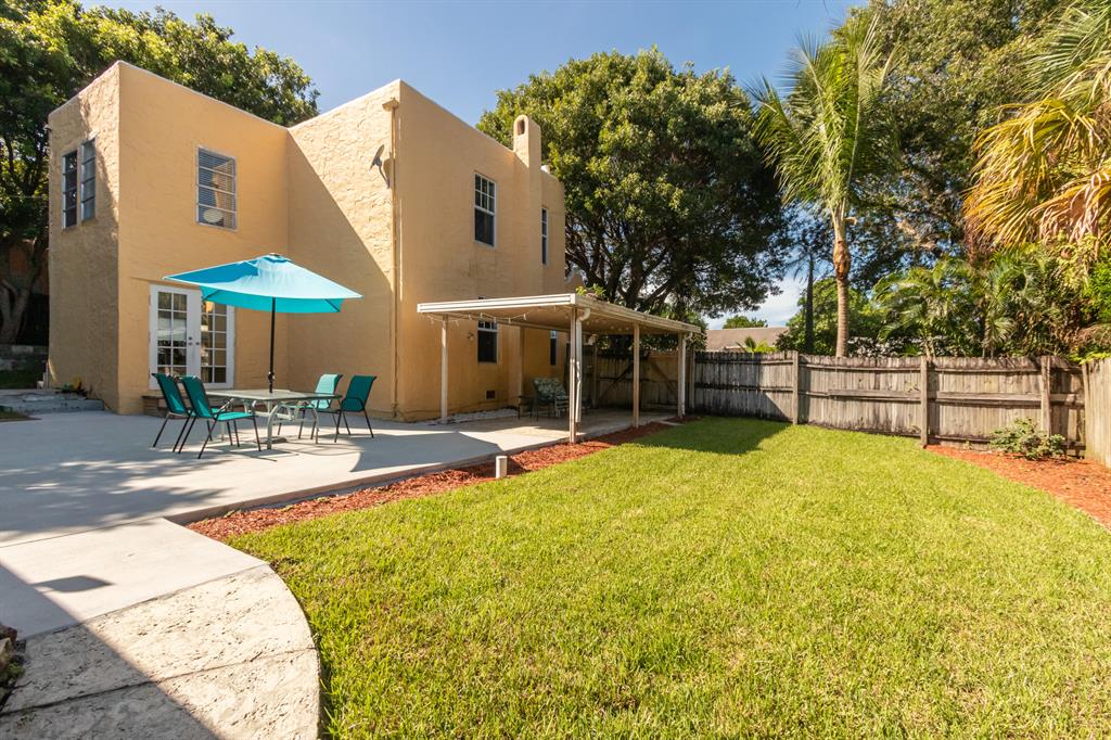 This completely renovated, two-story Spanish-style, three bedroom historic home sits on an extra-large lot with a double garage near downtown West Palm Beach. Impact glass windows, new roof, new A/C, updated kitchen & bath, updated electric & plumbing. Huge kitchen offers granite counters with stainless steel appliances & walk-in pantry. This fully updated house was just painted & the beautiful hardwood floors redone. Fireplace, formal dining room, & loggia/sun room. Lush, mature landscaping in the big yard surrounds an over-sized, new patio & carport which feels like a private oasis with room for a pool. Located just blocks from the Intracoastal & a short drive to the ocean & airport. Easy to add a second bathroom.