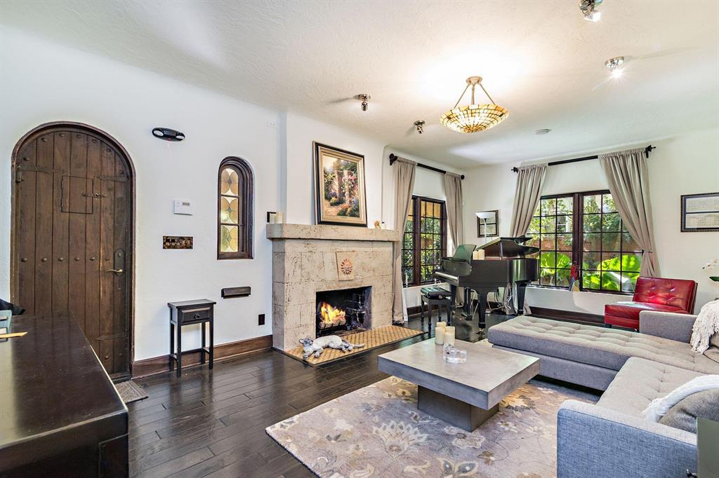 Gorgeous Flamingo Park Mediterranean home. This luxurious residence has 3 bedrooms plus den in main residence and 2 separate apartments in the guest house nestled around a Tuscan style pool. Brick path leads to the columned front porch with unique arches & cypress door. Interiors have wide plank wood floors, gas fireplace in living room, custom stone molding and coved ceilings. The spacious dining room has French doors leading to a private terrace & brick patio. Kitchen features custom cabinets, tiled backsplash, Brazilian Slate floors & commercial gas range. A grand Master suite with entry library/den, 21 X 13 Master bedroom with balcony, fireplace, spectacular master bath and walk-through closet. Impact windows & doors, new roof, lush landscaping & pool with waterfall and outdoor shower!