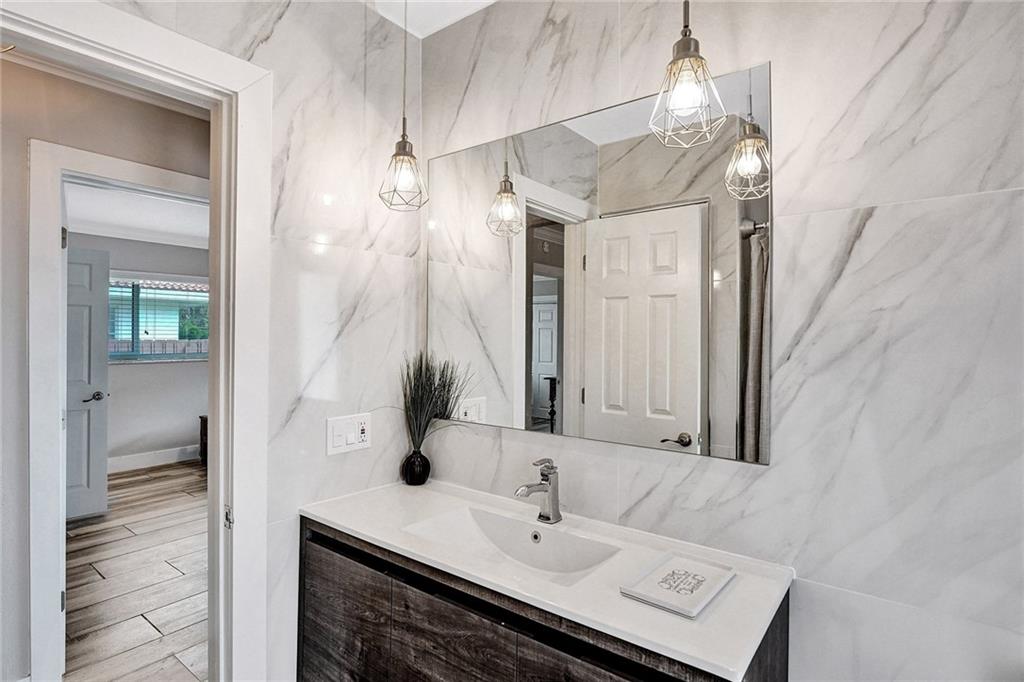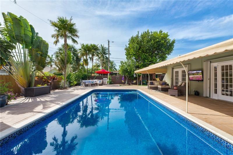Renovated 4 bedrooms, 3 bath single-family home located in Coral Ridge Country Club. This open concept home was remodeled in 2020, it features split bedrooms, new roof, new hurricane windows/sliders. The renovated kitchen an oversized counter perfect for entertaining, gas hook up for the chef in the family. Master suite features a spacious walk-in glass shower with bench, custom walk-in closet and slider to private pool area. the other bedrooms share a perfect Jack and Jill bathroom and 4 bedroom/office looks out to the oversized yard and ocean blue mosaic-tiled pool. Huge yard for entertaining, ocean blue mosaic-tiled pool. Move-in the ready, circular drive, 1 mile from the Beach/Lauderdale By The Sea. Owner/Agent.