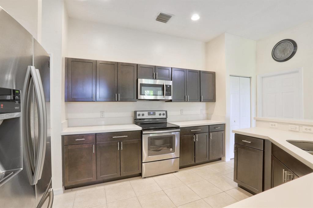 An amazing 3BR/2.1BA Single Family located in a gate manned family friendly neighborhood in Royal Palm Beach. Upon entering you're greeted by volume ceilings in the living room, dining room and kitchen. The kitchen is completely remoded, busting white quartz countertops, dark wood cabinets and stainless steel appliances. Tile flooring throughout and wood flooring on the second level. Extra storage and a sink was added in the garage. HOA dues cover landscaping, exterior painting, pressure washing the roof and basic cable. The Clubhouse offers a beautiful pool, exercise room, tennis courts, and executive meeting rooms. This home is a must see!