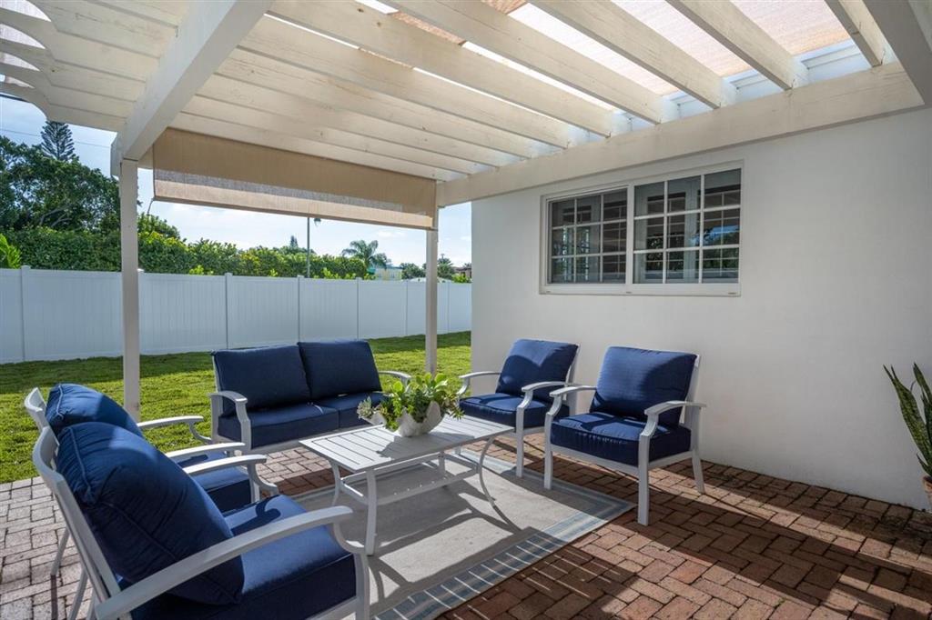 Light, bright and charming coastal Florida ranch home one block from the Intracoastal. Experience open plan living with abundant natural light on one of the Southend's best streets. Not to be missed is the home's prominent plumeria tree, pergola covered patio, outdoor shower and brand new privacy fence accented by completely re-imagined landscaping. Notable interior features include a primary suite with full bath and walk-in closet, built in storage throughout, impact windows & doors and spacious two car garage. Lovingly cared for and immaculately maintained, this home is turnkey and ready to be enjoyed for years to come. Close to area beaches, I95 and Palm Beach International Airport.