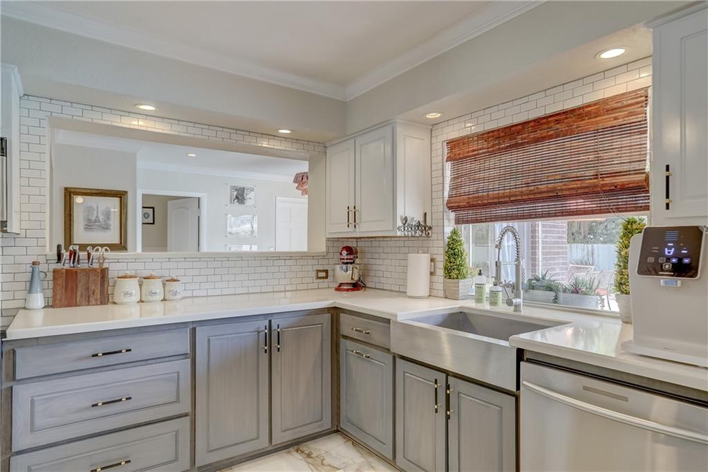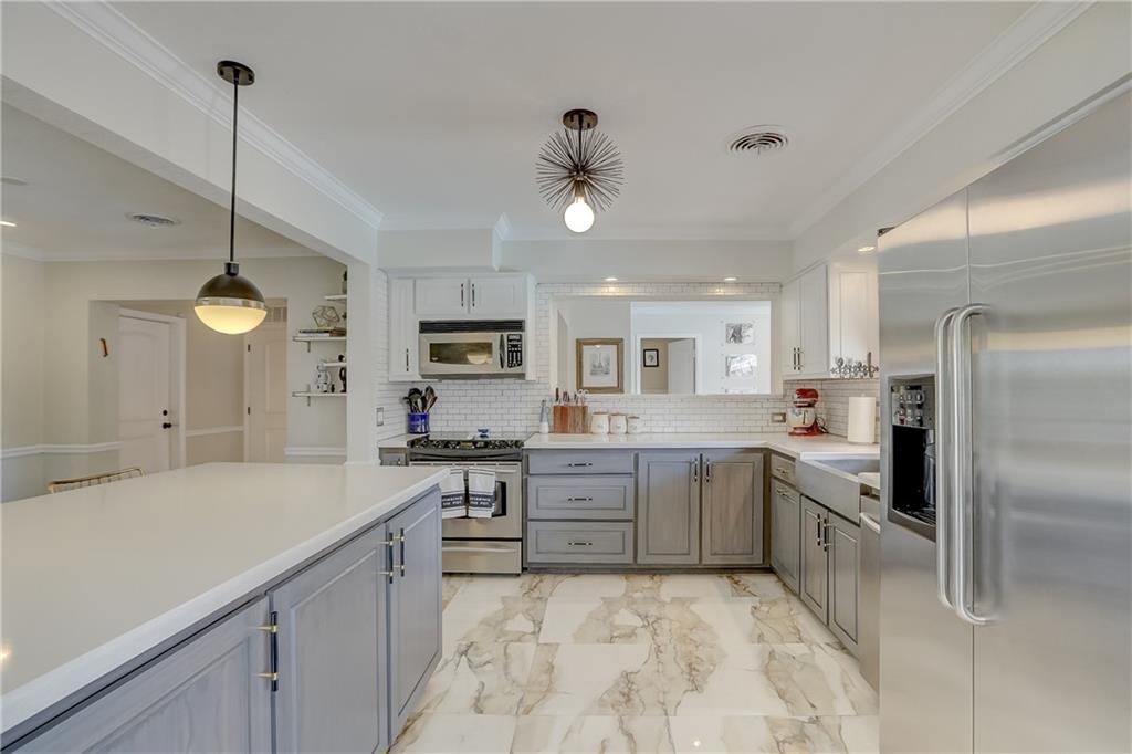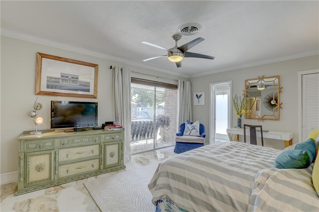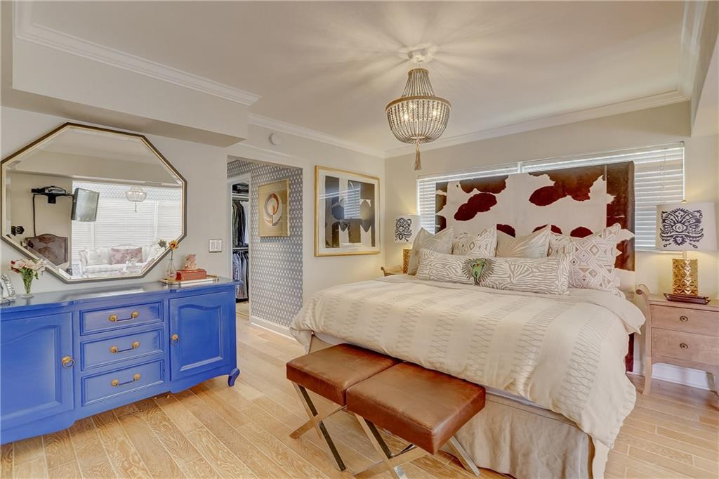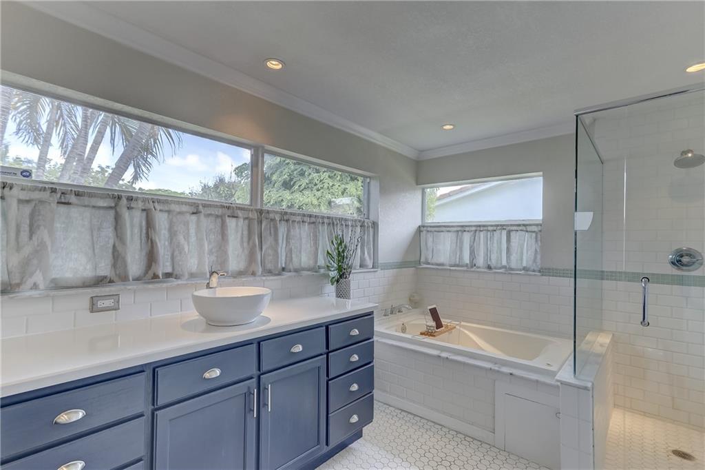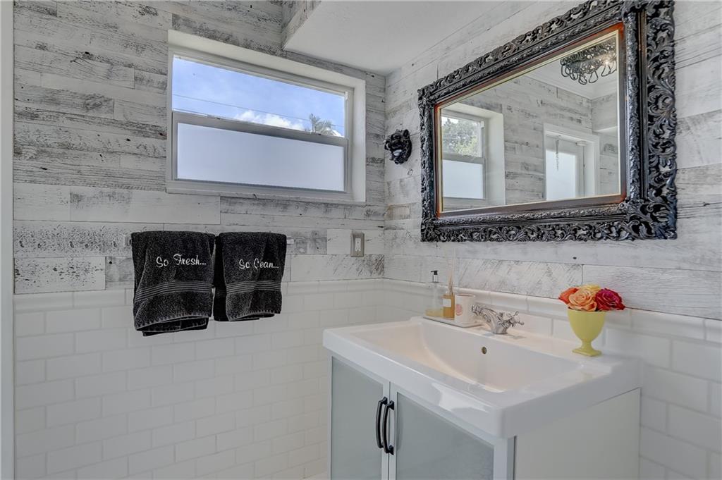 Nestled on a quiet street in the sought-after Hollywood Hills neighborhood, this split floor design offers a 2 car garage, 4 bedrooms and 4 full baths. Wood floors and stunning 24 x 24 porcelain tile run throughout the home. A Thibaut wallpapered-foyer welcomes instant views of the contemporary, open floor plan. A common living space is multi-functional and perfect for entertaining: outfitted with an over sized wood accent wall, a built-in wet bar with wine fridge, a freestanding island perfect for entertaining, as well as glass sliding pocket doors that open up to beautiful pool views. A updated kitchen is equipped with quartz countertops & subway tile backsplash. DOUBLE MASTER SUITES with sliding glass door's opening to resort style pool complete with Bose speakers. Welcome home!