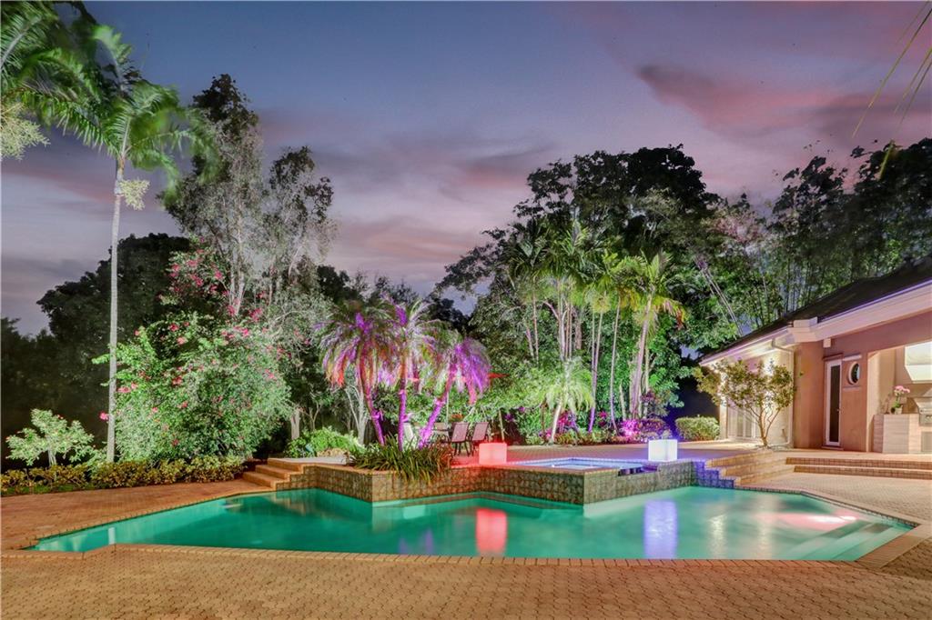 Spacious and meticulously detailed, this custom home is truly a well-hidden gem. It is nestled within the lush privacy of a cul-de-sac on one of the most desirable streets (The Outback) in central Plantation Acres. Sweeping windows and an open, triple split floorplan provide this modern home with an influx of natural light and open, breathable entertainment spaces. The home includes two, separate master suites, a professional-grade gym, and a tropical, azure pool and spa outdoors. Immerse yourself in the advantages afforded by a long list of recent upgrades, including: a new roof, generator, and garage doors as well as Murano glass lighting, new and premium-brand kitchen appliances (i.e., Subzero, Miele, Viking), custom cabinetry, and custom-designed shutters and accordions.