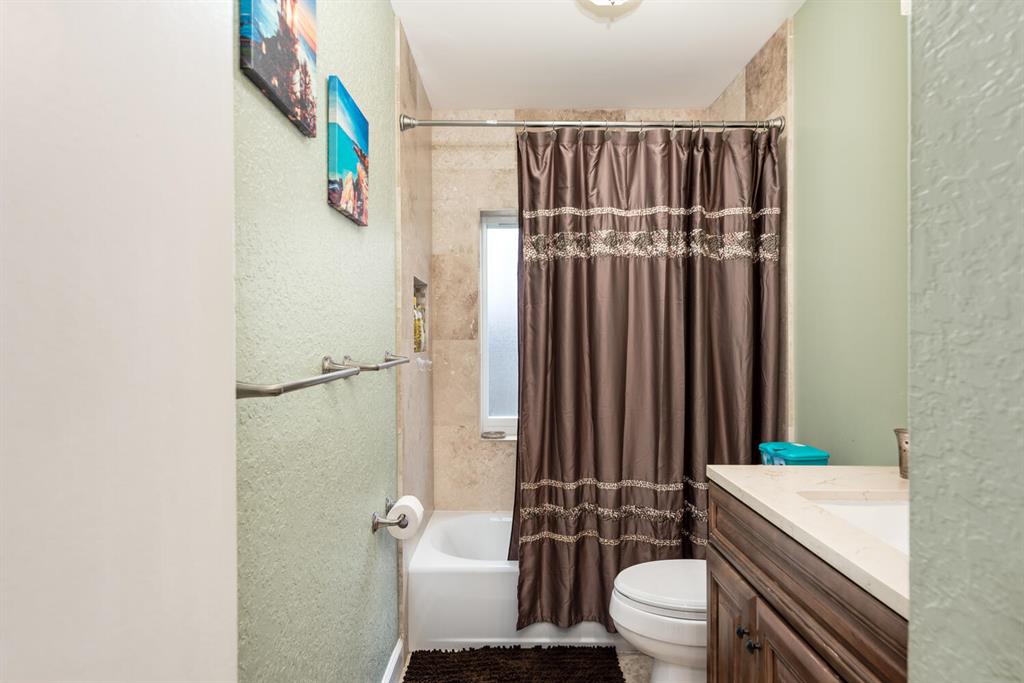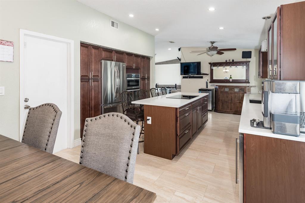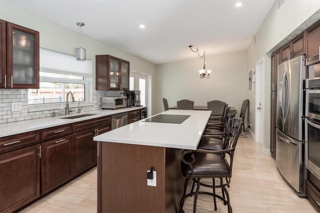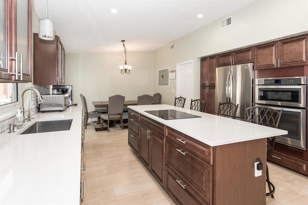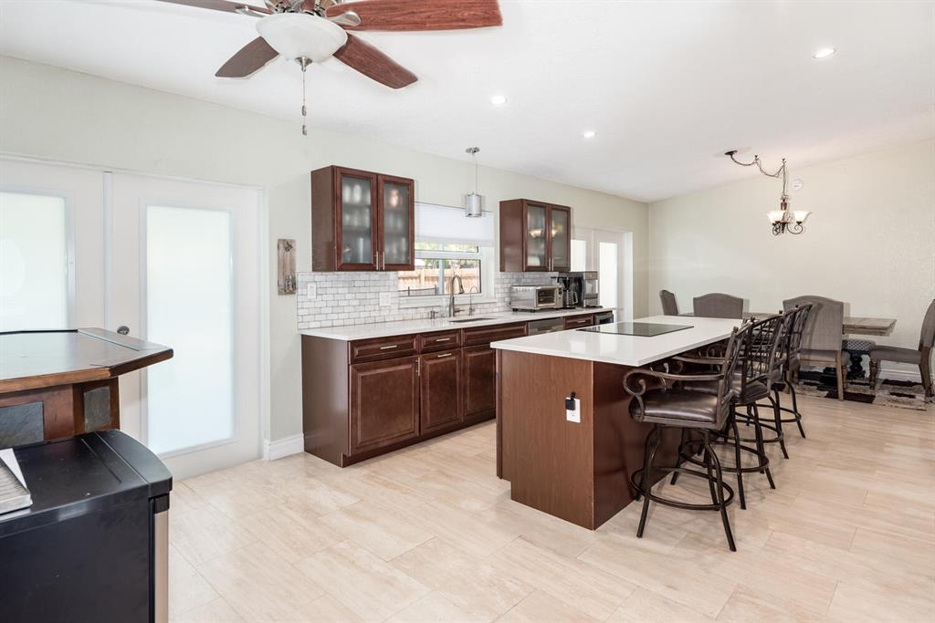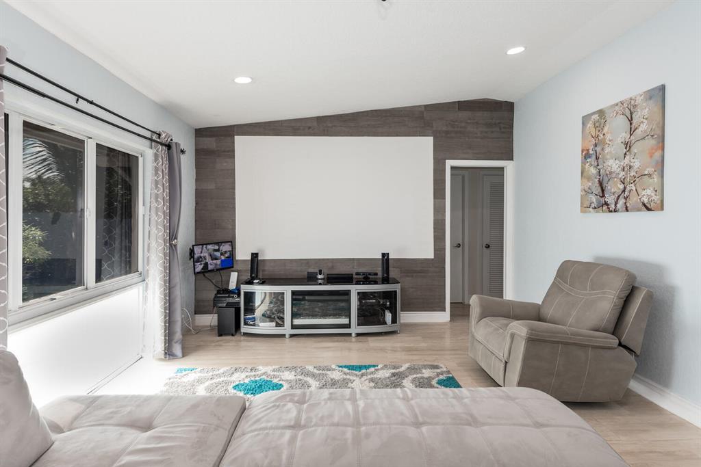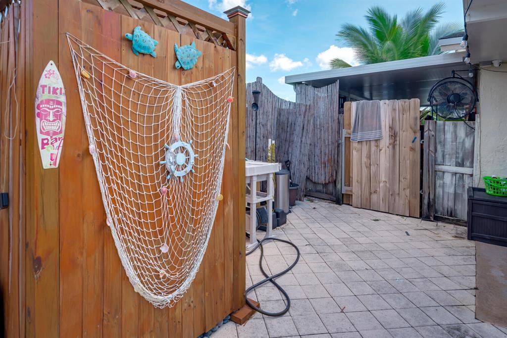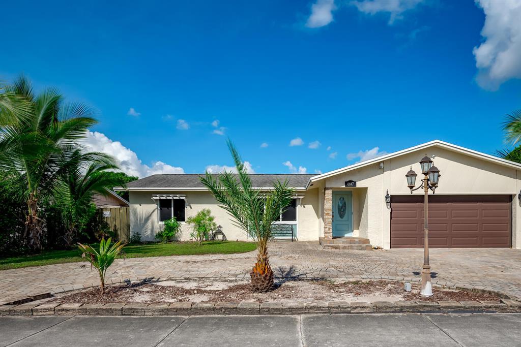 Welcome to Paradise! Beautiful totally updated 3 bedroom 2 bathroom home with hurricane impact windows & doors throughout & spectacular Salt water pool with outdoor shower & Gazebo for plenty of outdoor living. Travertine floors throughout living/kitchen area with beautiful stove top island with quartz counter-tops & beautiful cabinets. Hardwood floors in master bedroom with walk-in closet & marble top vanity in master bathroom with beautiful shower with jets & LED shower head. Bamboo flooring in the other bedrooms with built in floating organizer in closets. Newer AC with UV antibacterial lamp. Tank-less Hot Water heater. Newer electrical panel in garage. 9 camera system with monitor. Stainless steel appliances. Circular paved Driveway with 2 car garage. Move-in Ready! Priced to sell!