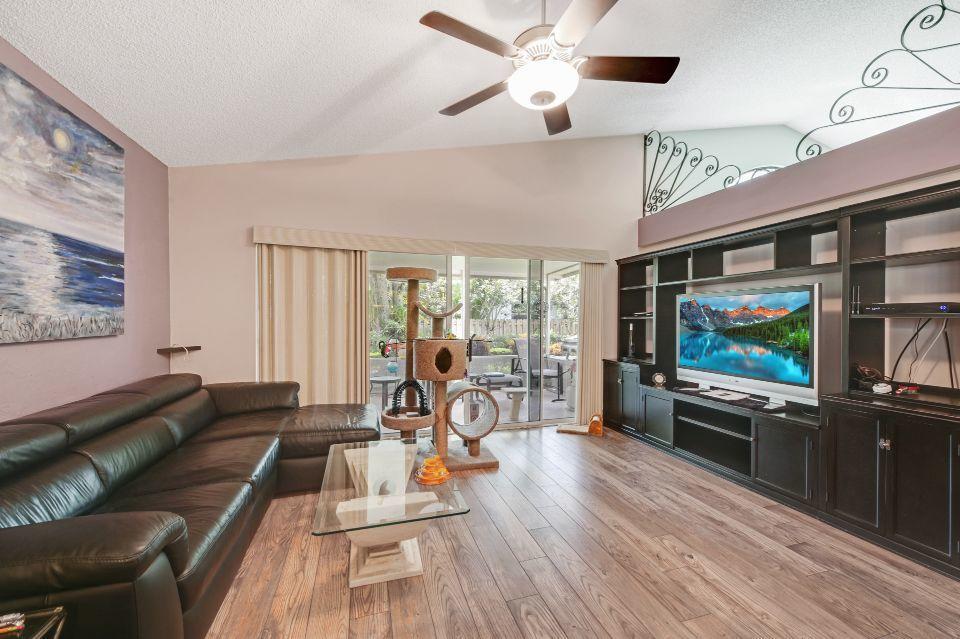 MOTIVATED SELLER!Beautiful, well-maintained home in the lovely Lakeside Green community! This home is completed hurricane proof with accordion shutters, new garage door and impact glass on large windows. Brand new A/C unit this year. Enter the home to a spacious living and dining area with gorgeous bay window, volume ceilings and cast iron detailing. The kitchen features a beautiful granite counter tops. The master bedroom includes custom closet organization and unique slanted ceiling. Master bath completely renovated with dual sinks, great storage space and walk in shower in. The screened in patio creates a perfect space to enjoy the private backyard oasis that this home has to offer. Located in a quiet neighborhood minutes from the highway, shopping, fine dining & beaches.