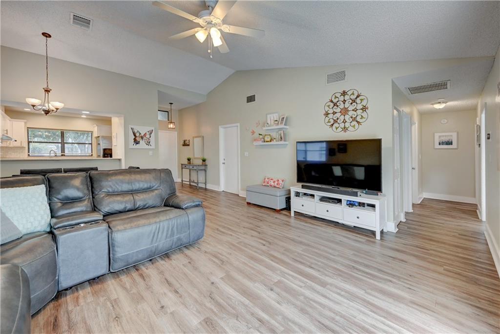 Beautifully remodeled 3 bedroom, 2 bath pool home centrally located in The Crossings. This home has an updated kitchen with Granite countertops and Stainless Steel appliances. Other features include newer wood flooring in the living room and all bedrooms (No carpet), Nest thermostat, Accordion shutters and fenced back at the end of a quiet cul-de-sac. No HOA fees.