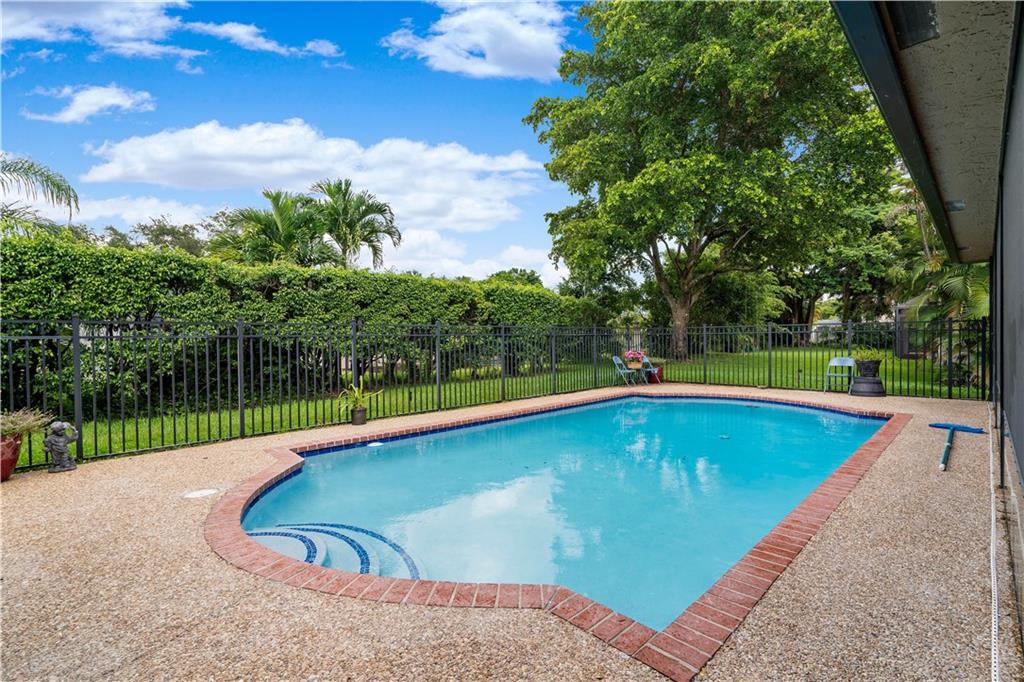 SOME OF THE MANY UPGRADES AND UPDATES IN THIS BEAUTIFULLY MAINTAINED, SPACIOUS HOME ARE:BRAND NEW POOL RESURFACING,WOOD LOOK TILE THROUGHOUT THE MAIN AREAS AND THE FIRST BEDROOM, NEWER WASHER/DRYER,KITCHEN SINK, ,DISPOSAL,LEAF FILTER GUTTERS WITH A LIFETIME GUARANTEE. IMPACT WINDOW OVER THE KITCHEN PASS THROUGH, ACCORDION SHUTTERS FOR ALL OTHER WINDOWS,HURRICANE RATED GARAGE DOOR. A/C UNITS SERVICED REGULARLY, SPACIOUS AND FENCED BACKYARD. NO HOA! A MUST SEE!