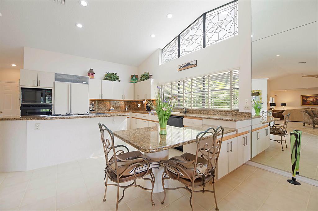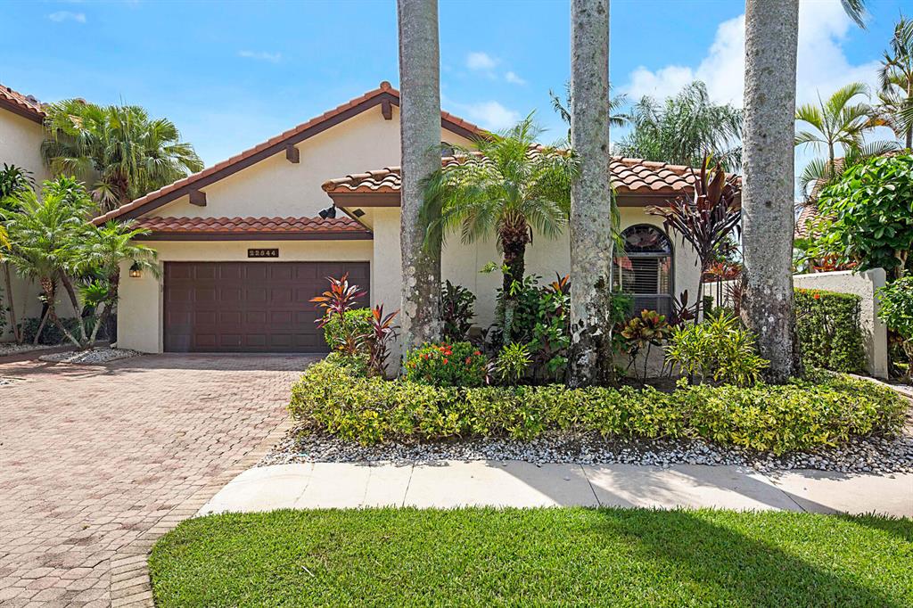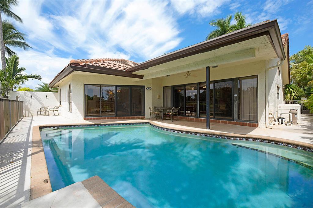 This remarkable 3 bedroom + convertible den, 2.5 bath pool home offers stunning waterfront and golf course views from the private, fenced backyard! Located in the highly desired Boca Pointe community, this upgraded home offers open living spaces full of stylish architectural detail, neutral ceramic tile throughout, and a large, open kitchen with breakfast bar, granite counters, recipe desk, cook island, sub-zero fridge, wall oven and endless storage and counter space. The spacious master bedroom overlooks the lake and golf course and features a large en-suite bathroom with separate shower and tub. The fenced, private and covered patio is an entertainers paradise as it overlooks the pool, lake and green golf course.