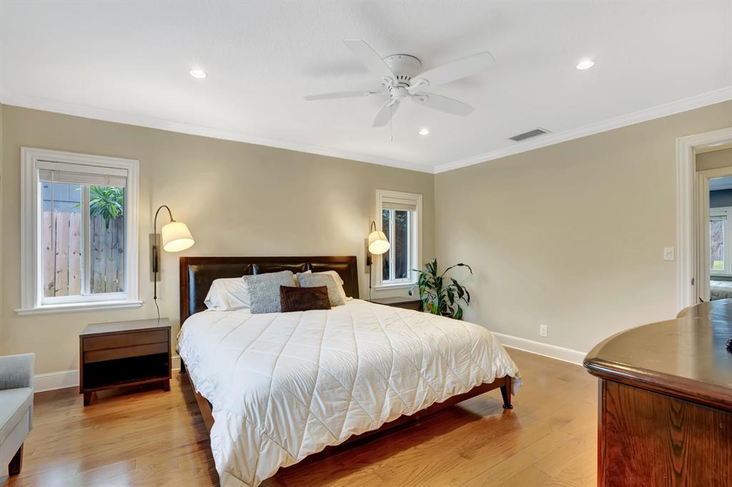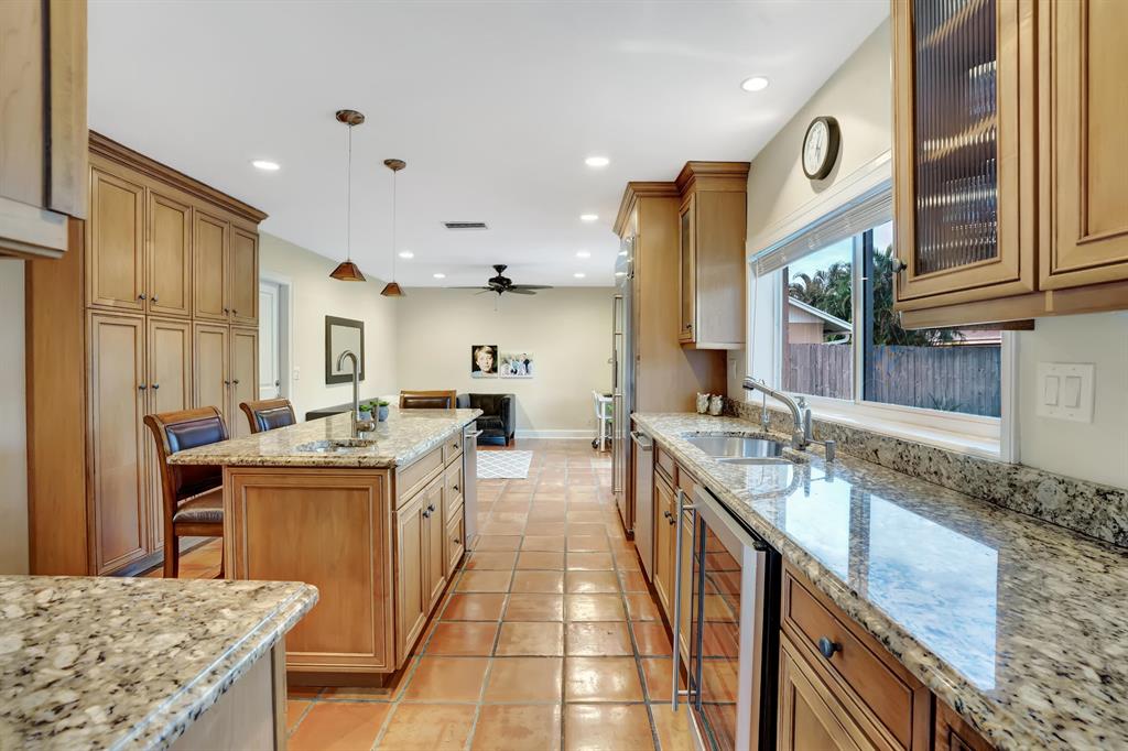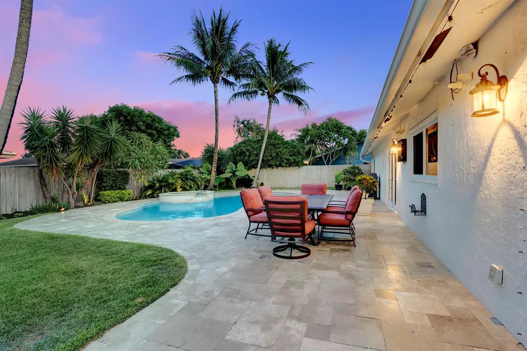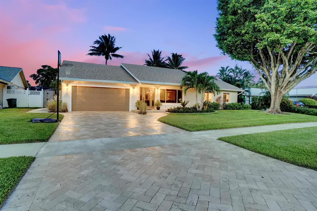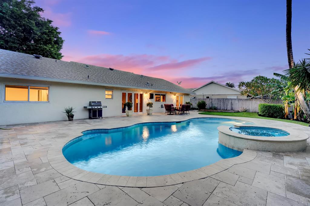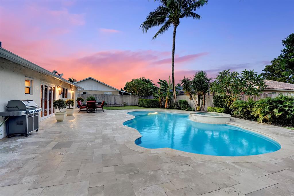 Immaculate one story home in Boca's highly desirable and centrally located Pheasant Walk development. You are greeted with a cathedral ceiling family room, charming formal dining hallmarked by french doors opening to a huge, gorgeous, privately fenced backyard with a resort style 8' deep Hayward salt system heated pool, elegant travertine decking, sun deck, spill over spa plus a 15 X 6 garden bed for your own herbs and vegetables creating a true tropical oasis. Interior boasts a large bright, open, granite eat-in kitchen, dual sinks, with stainless appliances, new Induction stove, convenient island with artsy tea-lights. Three graciously proportioned bedrooms including a master with dual basins, frame-less shower and built out walk-in closet. Seemingly endless upgrades include classic