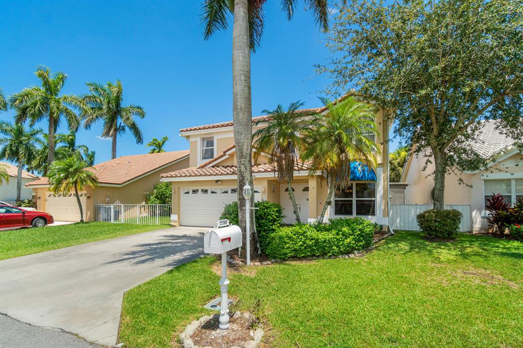 Beautiful two-story lakefront home located in Impressions of Boca Chase! This impressive home features 4 bedrooms and 2.5 bathrooms sprawling over 2,400+ SqFt under air. This turnkey home features newly installed wood laminate floors throughout for easy maintenance! Privacy is a priority, with no rear neighbor and a beautiful lake view. All four bedrooms are upstairs with an oversized master suite and a separate sitting area perfect for a home office, nursery, etc. The master suite also features a tastefully updated master bath with a separate tub and shower. The upstairs houses three more guest bedrooms and another full bathroom, with updated flooring throughout. The open concept kitchen was just recently updated with white cabinets, granite countertops, and stainless steel appliances.