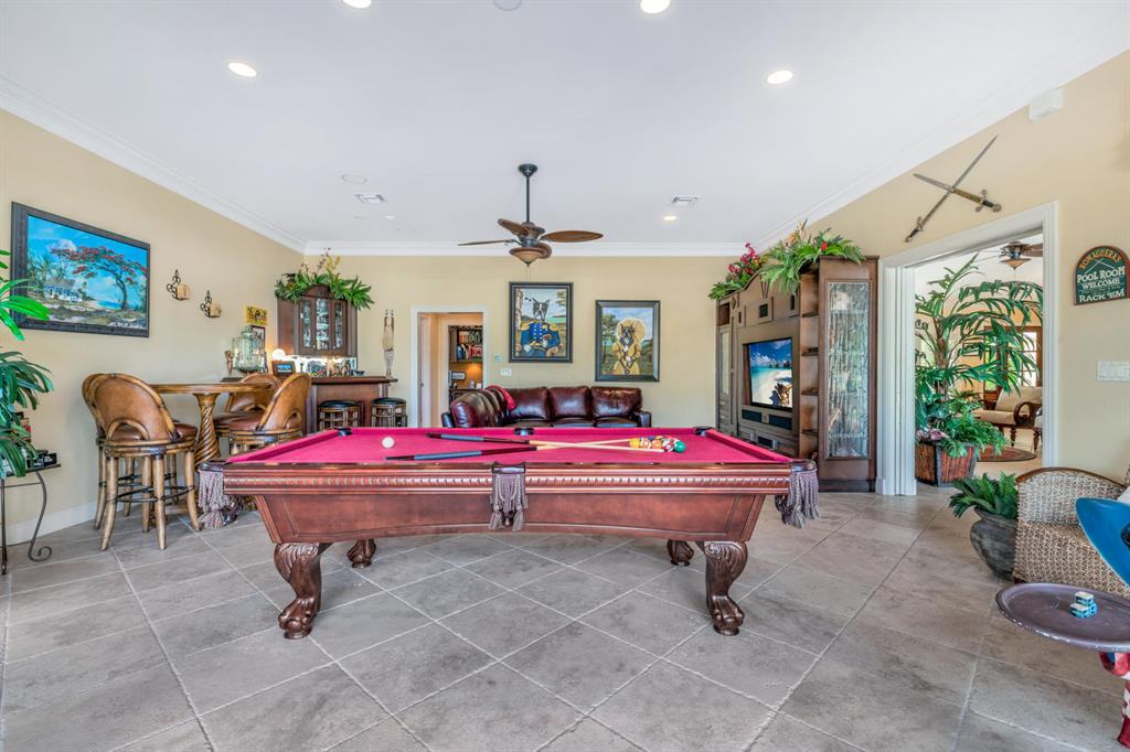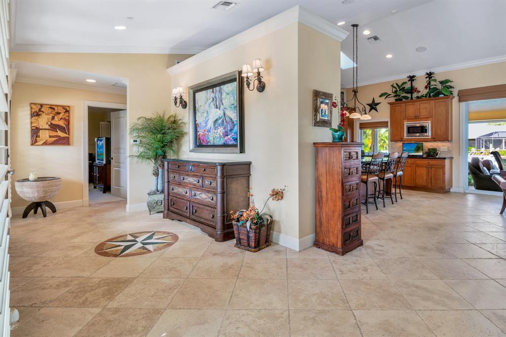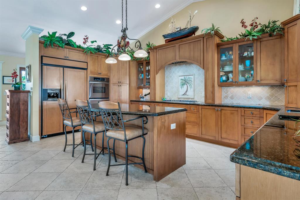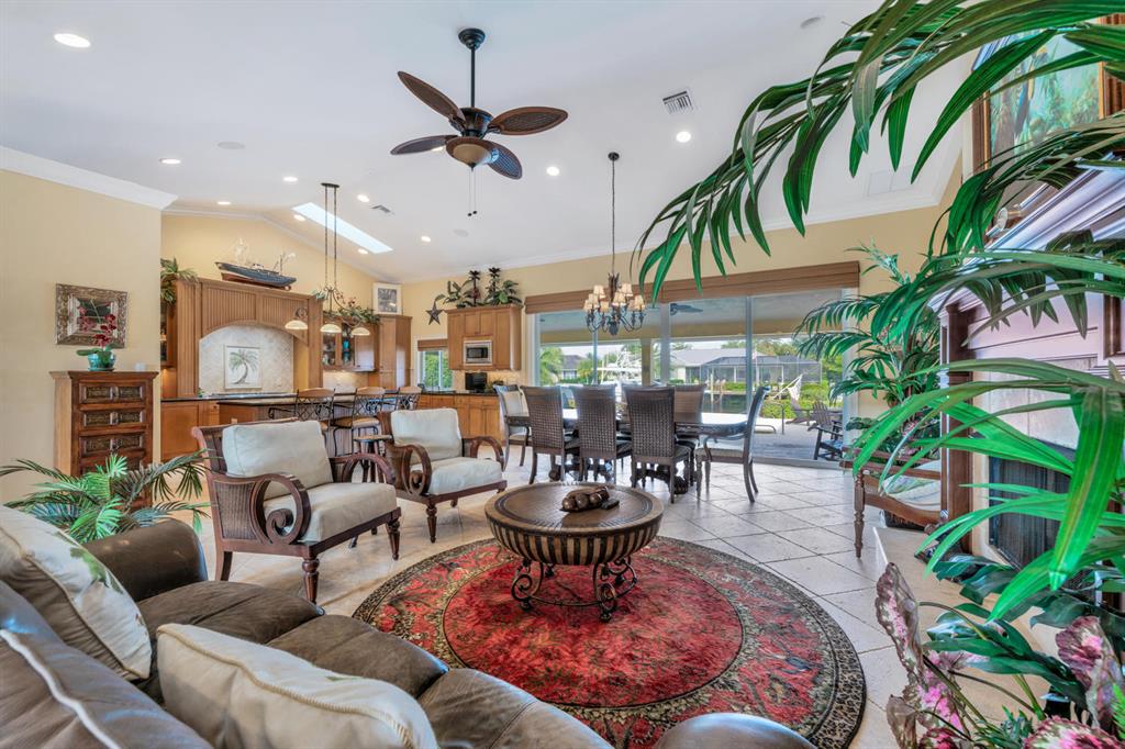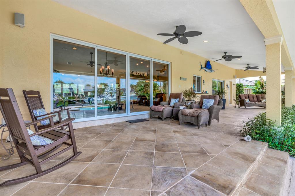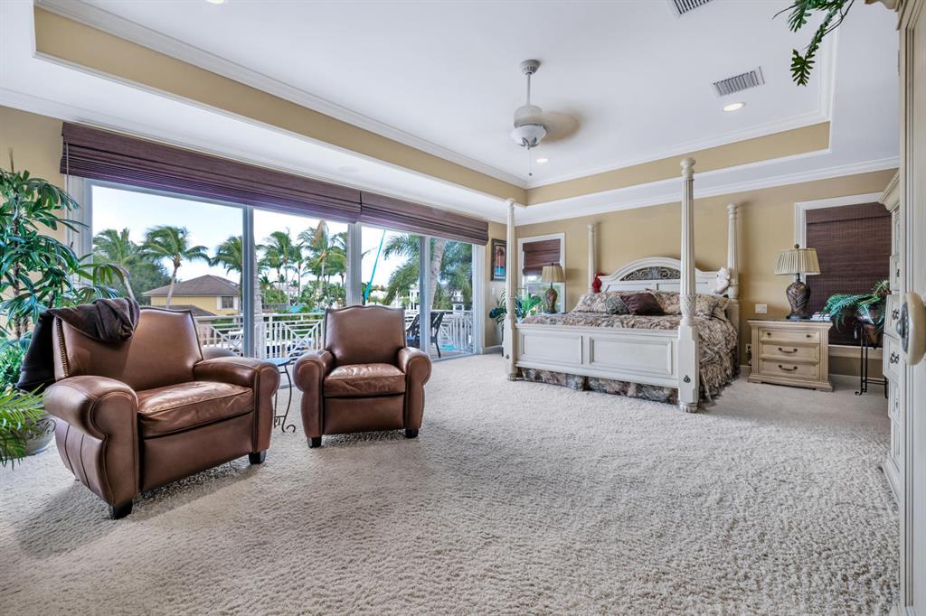 This Gated Community 4 Bed, 4 Bath, 1 Half Bath, Plus Den, Bonus Room, and overside 2 car garage Keating Moore Built Home features 3,933 Liv Sq/ft, 5,633 Total Sq/ft, on a Wide Deep Water Canal Located in the sought after Prosperity Bay Village Development. 100/ft of Water frontage for up to 80/ft Boats on a 100/ft wide canal with No Fixed Bridges. This home was Renovated, a CBS First Floor expansion completed, and Wood/Stucco Second Story Addition Added in 2004 including an updated floor plan, impact windows, large covered patio with summer kitchen, updated electrical & plumbing, a 50 year Metal Roof, Tumbled Marble Floors, High end Propane Gas Appliances, Plantation Shutters, Full home Sound System, and Updated Kitchen. The property has A Private Terraced 60ft Dock with accompanying
