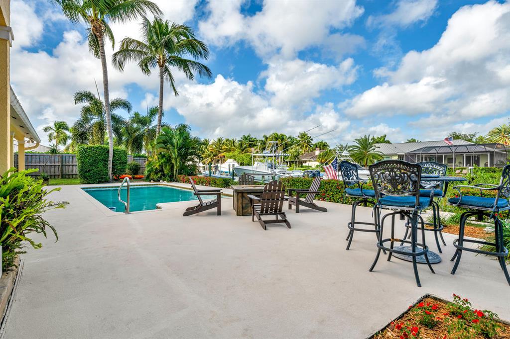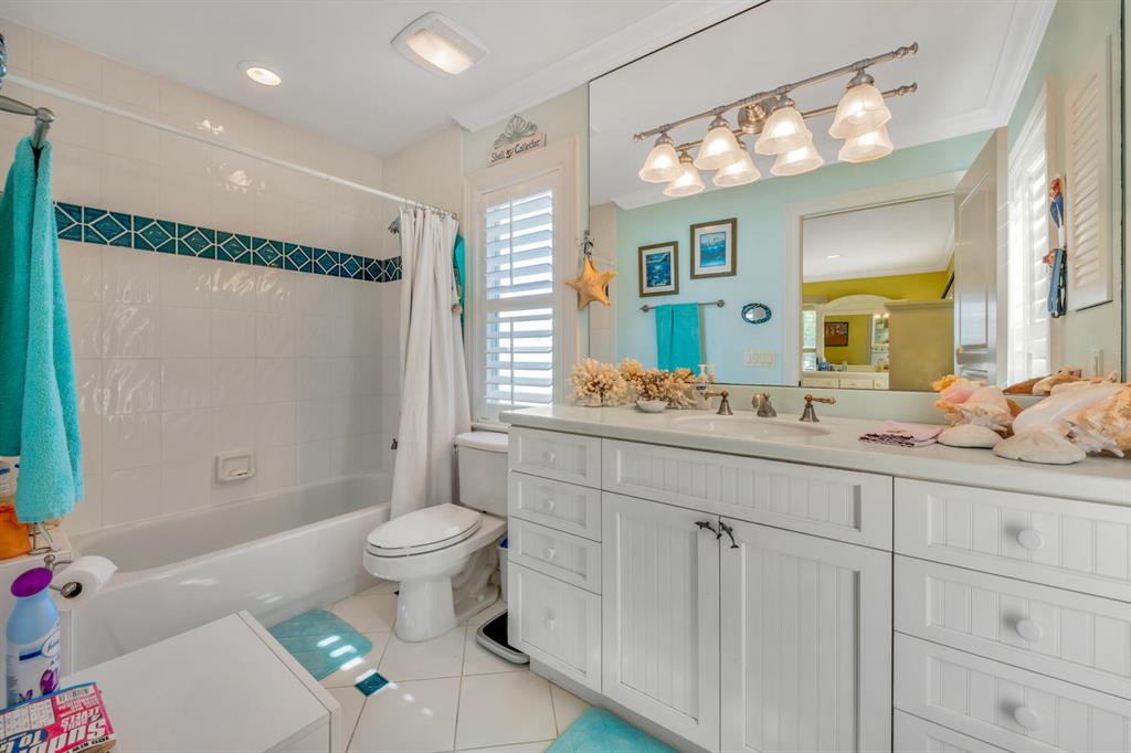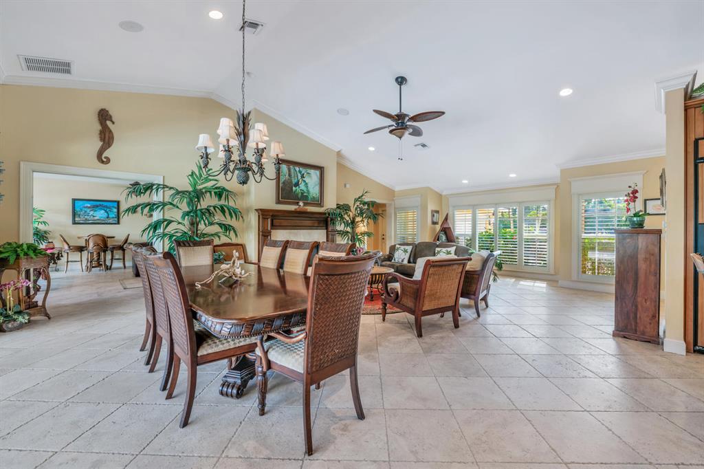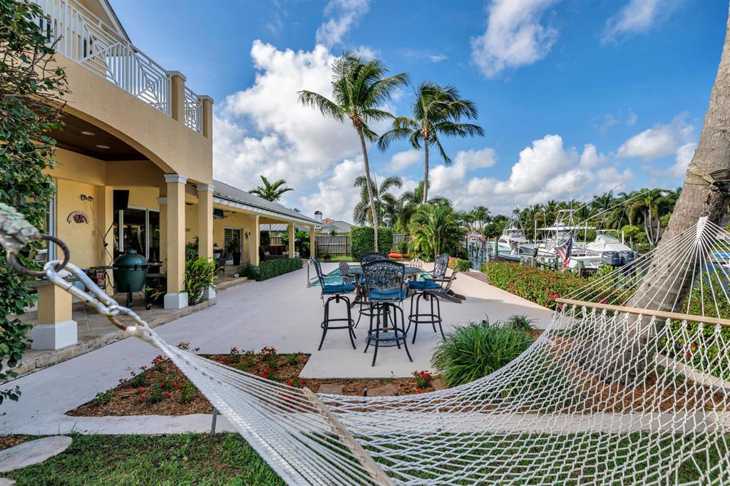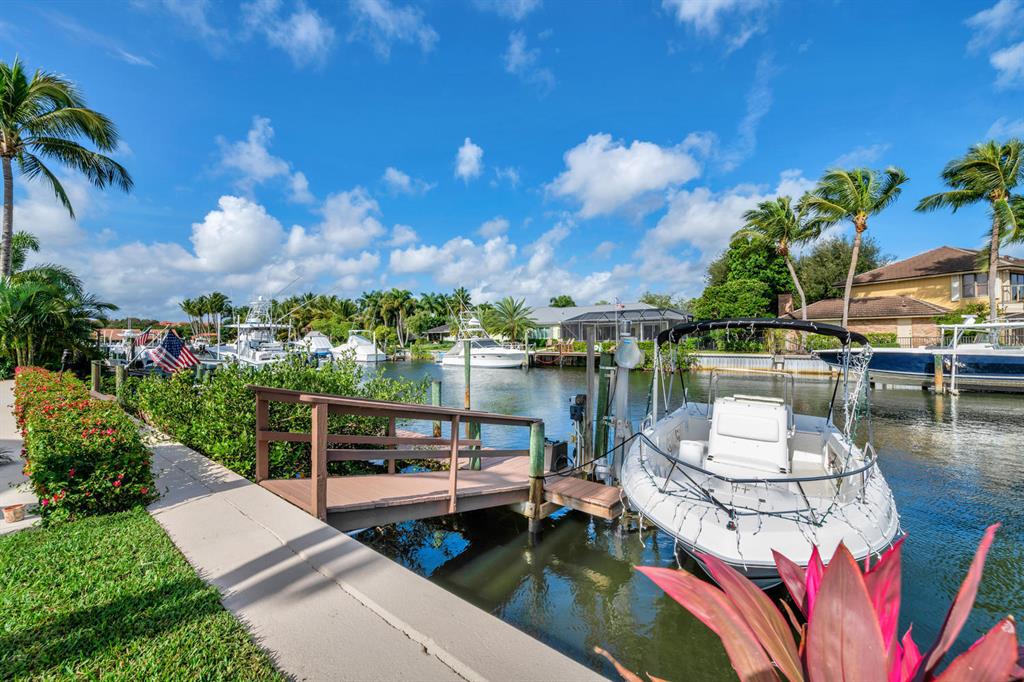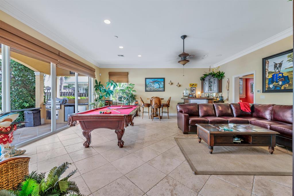 This Gated Community 4 Bed, 4 Bath, 1 Half Bath, Plus Den, Bonus Room, and overside 2 car garage Keating Moore Built Home features 3,933 Liv Sq/ft, 5,633 Total Sq/ft, on a Wide Deep Water Canal Located in the sought after Prosperity Bay Village Development. 100/ft of Water frontage for up to 80/ft Boats on a 100/ft wide canal with No Fixed Bridges. This home was Renovated, a CBS First Floor expansion completed, and Wood/Stucco Second Story Addition Added in 2004 including an updated floor plan, impact windows, large covered patio with summer kitchen, updated electrical & plumbing, a 50 year Metal Roof, Tumbled Marble Floors, High end Propane Gas Appliances, Plantation Shutters, Full home Sound System, and Updated Kitchen. The property has A Private Terraced 60ft Dock with accompanying