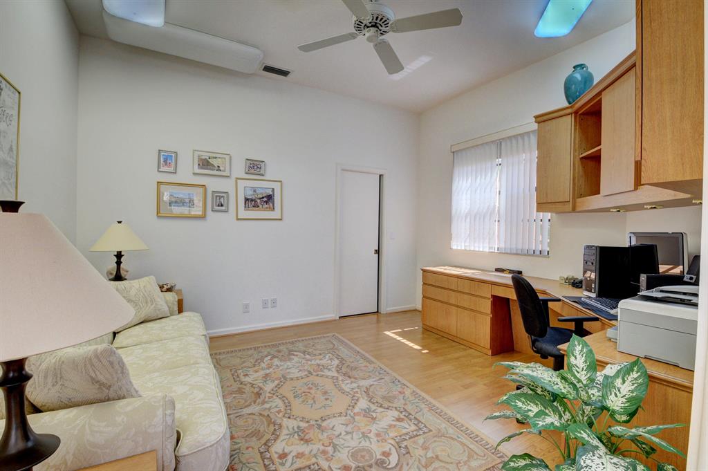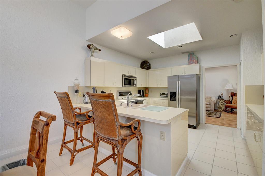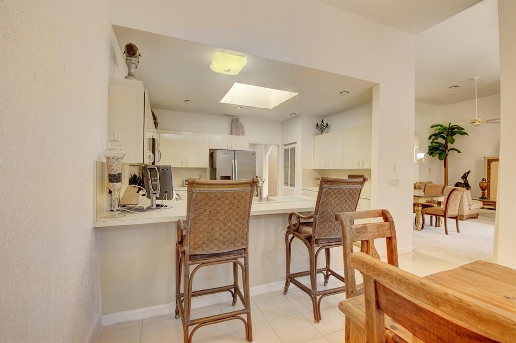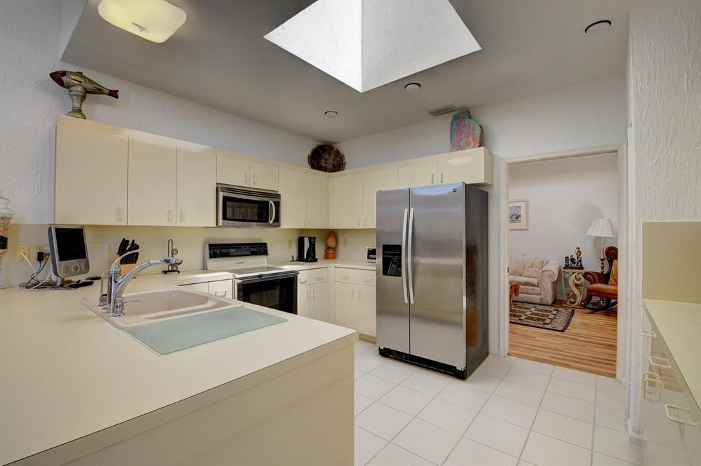 Enter this beautiful, light and bright one story home in popular Villa Flora community. Huge screened in patio with tranquil lake views. High ceilings, lots of windows and several sky lights. Floor plan features a nice size living room and dining room, huge breakfast area, den, powder room and split bedrooms. Master bedroom has a large walk in closet and nice size master bath with double sinks and separate shower and tub. Second bedroom has walk in closet and private bath. Third bedroom has built in desk for comfortable home office with pocket doors and walk in closet. Kitchen has lots of counter space and abundance of cabinets plus pantry. House has accordion hurricane shutters on all windows and doors. Roof replaced in 2009 and A/C replaced in 2015. Don't miss this one!