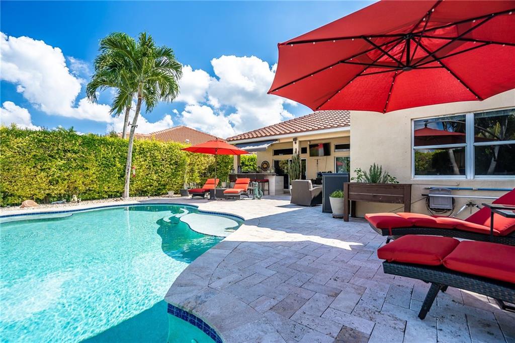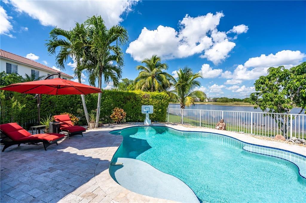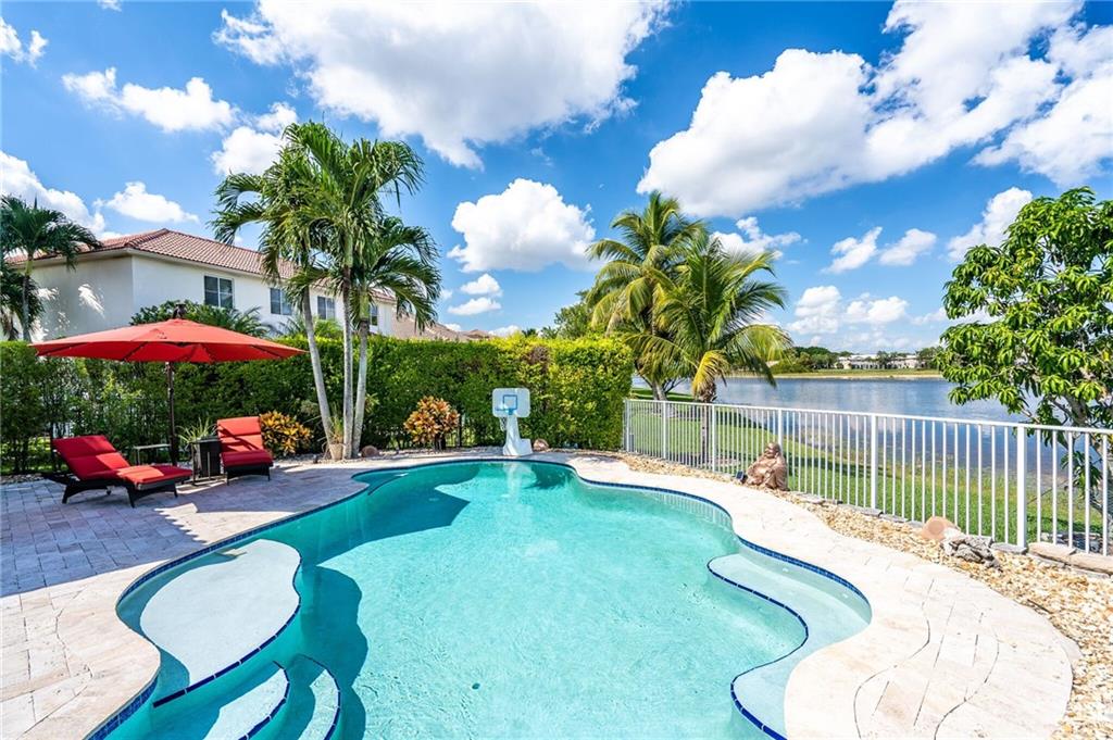 Now presenting this stunning, completely upgraded 4 bedroom/2.5 bathroom home in The Meadows of Weston with over $150k in upgrades! BRAND NEW ROOF with 2 solar-powered attic fans, NEWER AC, landscaped with in-ground timer sprinkler system, fiber optic, remote control blinds throughout home, surround sound and colorful LED lighting (indoors & outdoors), beautiful pool with lakefront views and a travertine tile deck, an outdoor built in bar/BBQ, and fire-pit making this house PERFECT for living and entertainment, A+ schools, plus much more that you have to come and see for yourself!!