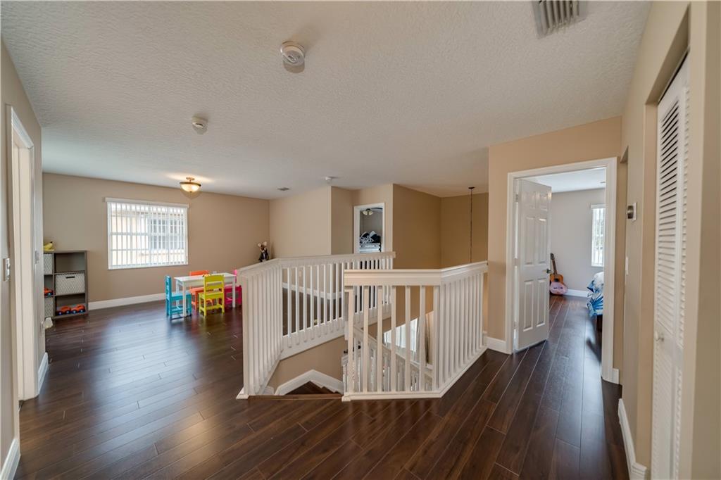Welcome home! Spacious 4 bedroom 2 & 1/2 bath home in a gated community is ready for its new owner. Warm neutral tones make this home inviting. Plenty of room! There are two separate living spaces downstairs and an additional loft space upstairs. Closets are complete with built in shelving. 20'x20' porcelain tile throughout the first floor and beautiful dark walnut laminate on the upper floor. Two car garage. Large stamped concrete open patio. Newer accordion hurricane shutters & hurricane garage door. New oven, new dishwasher, stainless refrigerator with in-door water/ice. TRANE hi efficiency AC with 2 stage cooling. Sprinkler system. Close to 75/Sawgrass for an easy commute.