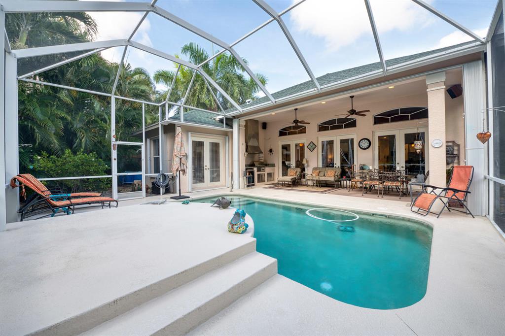 Virtual tour https://my.matterport.com/show/?m=FhfL379T2Rz&mls=1 This Meticulously cared for custom built 2002 Villa Franca CBS open floor plan single family home has 3 bedrooms plus den/office, 2 bathrooms, 2 car garage, large outdoor living area with screened in and heated saltwater pool, summer kitchen, covered patio, an oversized fully landscaped with hardwire LED landscaping lights on .28 Acre lot with fenced yard and tons of added features. The home boosts 12 ft tray ceilings with crown molding, interior LED lighting, indoor/outdoor sound system throughout, automatic generator, 500 gallon propane tank, tankless hot water heater, a whole home security system-owned, central vacuum and more. Full hurricane protection including new accordion shutters, a new roof & A/C were all added
