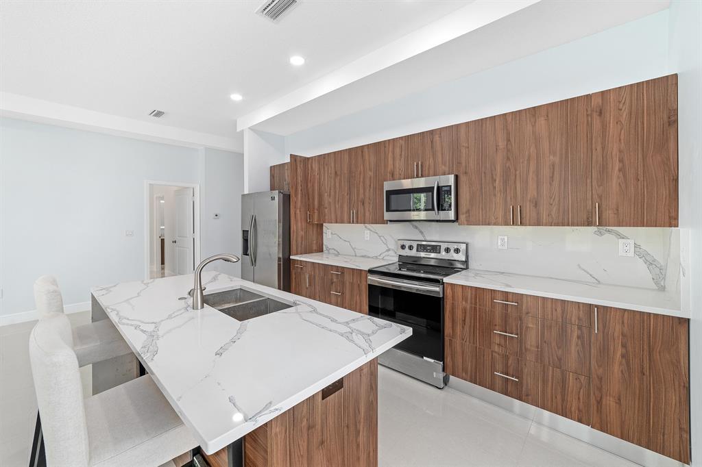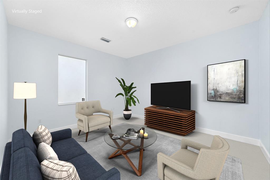This is your opportunity to purchase a new, single family home! This property has 3 bedrooms, 2.5 bathrooms and a bonus room with 1,750 square feet of living space! This home features hurricane resistant impact glass windows and 10' high ceilings. Gorgeous 24'' polished porcelain tile is showcased throughout the entire home. The open concept kitchen is perfect for entertaining! It is equipped with Samsung stainless steel appliances, high-end contemporary cabinets, stunning quartz counter tops with a waterfall edge center island and a quartz back splash. The spacious master bedroom overlooks the backyard and features a walk-in closet. The master bathroom offers a quartz counter top vanity with a separate walk-in shower with frameless enclosure and a roman tub.