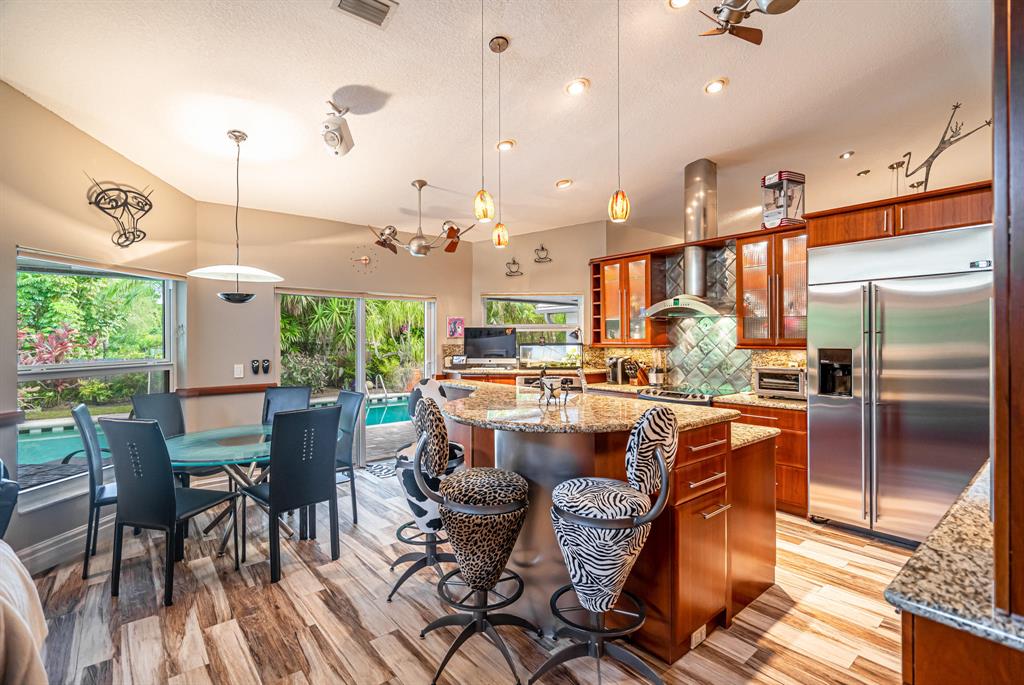 One of a kind single-story home in highly sought after Estates of Boca Lyons. Pure love & pride in ownership. 4 bedrooms + additional built-in office & 3 bathrooms. Renovated open kitchen with high-end stainless steel appliances, granite counters, hard wood cabinets. Master bathroom is now your in-house spa to unwind in after a days work; including steam shower, deep jacuzzi soaking tub, custom lighting & cabinetry. Beautifully paved circular driveway & pool deck. Private/Tranquil backyard, exotic landscaping, Malibu lighting to enjoy under the long covered patio, perfect for outdoor entertaining in any weather. Hurricane Impact Windows + generator ready with hookup installed. Newer AC & WH. Low HOA. All A schools, quiet neighborhood close to highways, shopping, dinning and much more.