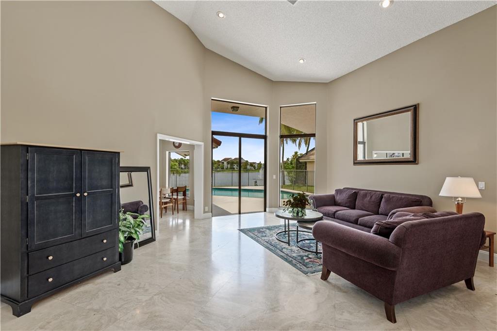 Nestled on a private lake front lot, this beautiful 5 bed 3 bath home is ready for you! Among many features, this elegant & bright floor plan offers high volume ceilings, triple split layout and transom windows for more natural light. Gorgeous neutral travertine floor throughout living area and laminate wood in bedrooms. Remodeled kitchen w/granite counter top and stainless steel appliances. Snack bar and breakfast area for all the family to share meals and enjoy. Spacious master suite with 2 walk-in closets. Plenty of light in every room. Huge family room. Enjoy this amazing 1/4 acre lot w/spectacular views of the lake .Tequesta is conveniently located close to shopping, highways and schools setting a bar high for privacy and ready for relaxing and entertainment! Guard gated 24/7