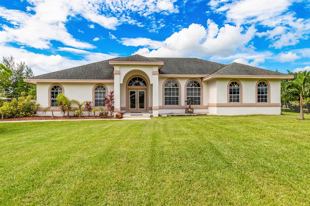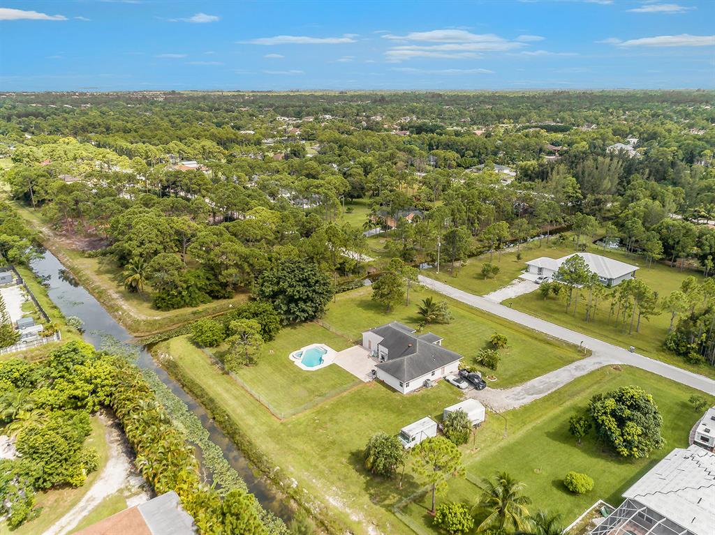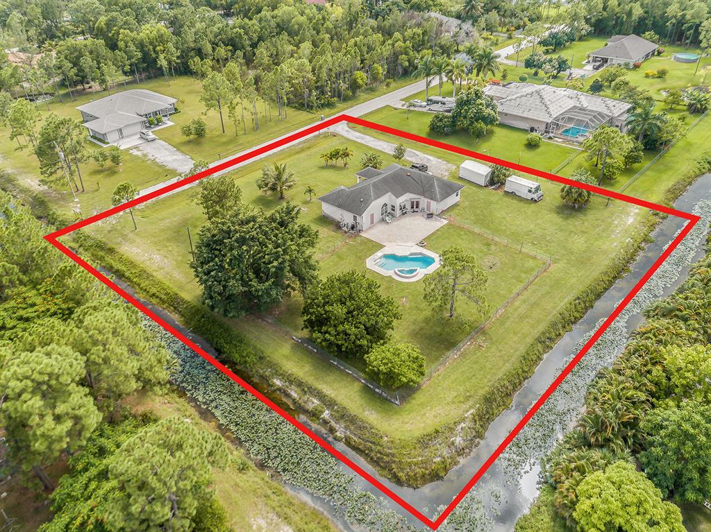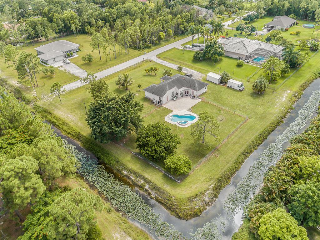 Situated on an oversized corner lot in The Acreage this large pool home is waiting for you! With an expansive yard there is plenty of room to roam. Canals border 2 of the 4 sides of the property providing a quiet and secluded backyard. Bring what you wish as there is no HOA which allows you to have your pets, toys, AND privacy! A split floor plan gives family members or guests the space they desire to spread out and yet the great room brings everyone together. Granite countertops and stainless steel appliances in the kitchen give a modern flair, and a large snack bar provides extra seating for mealtimes or entertainment. The 5th bedroom can be utilized in a variety of ways, such as a game room, gym, office, etc. There is also a small office/den space that could be used in a...