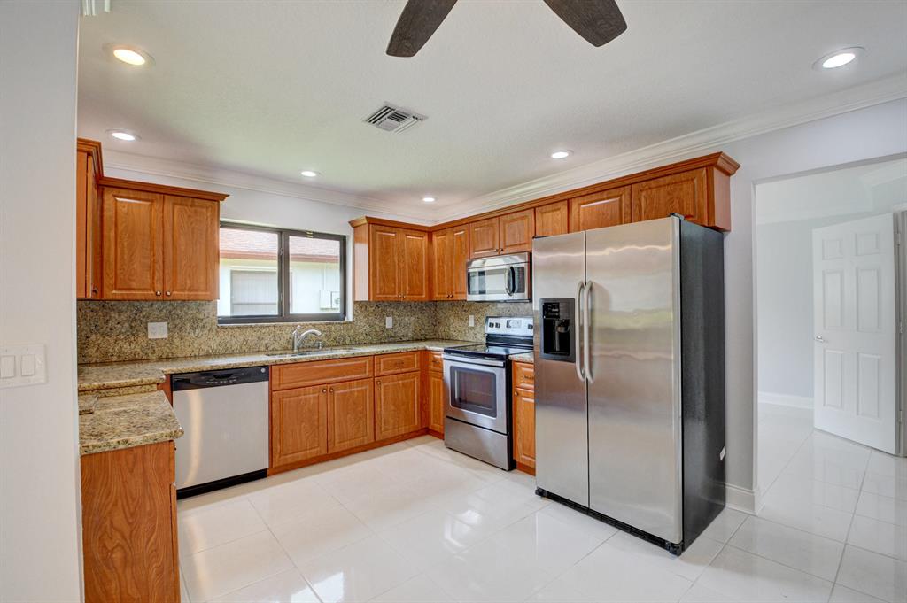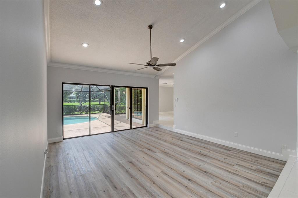 NEWLY RENOVATEDhome w/diamond brite POOL & SPA on serene canal lot in Boca Chase. Hurricane rated double door entry to the large foyer. Sit on the pool deck or under the spacious 10x6 separate covered patio and enjoy the view. Updated kitchen with wood cabinets, granite counter tops, backsplash and SS appliances. Large WHITE TILE in kitchen, dining room, family room and hallways. NEW FLOORING in living room & bedrooms.. Freshly painted. Hurricane garage door(2009), impact windows above front door. Accordian shutters,(2009) roof 2004, NEW LED LIGHTS. NEW CROWN MOLDING&BASEBOARDS. Alarm system. FLEXIBLE FLOOR PLAN can easily convert DR to study/den. FR can be Dining Rm. So much more!Low hoa fee includes basic cable. ''A'' rated schools,close to shoppoing &restaurants. See supplement!