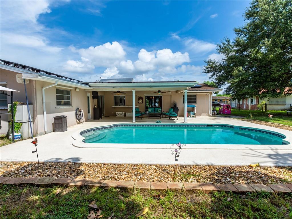 BE THE FIRST to see this beautiful Capri model 4B/2B home in the beautiful PRIVATE Secluded Gardens! The foyer opens up to a very large living and dining room combo. This 1/3 of an acre land property with lots of space surrounding the pool is EVERYTHING you need. Baseball fan? This house has a batting cage installed this year! WHY IS THIS GREAT HOUSE DIFFERENT FROM THE REST? It is Energy Efficient! Solar panels and variable speed energy efficient pool pump installed in 2018 saves over $300 per month in electricity costs.