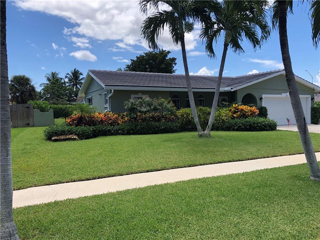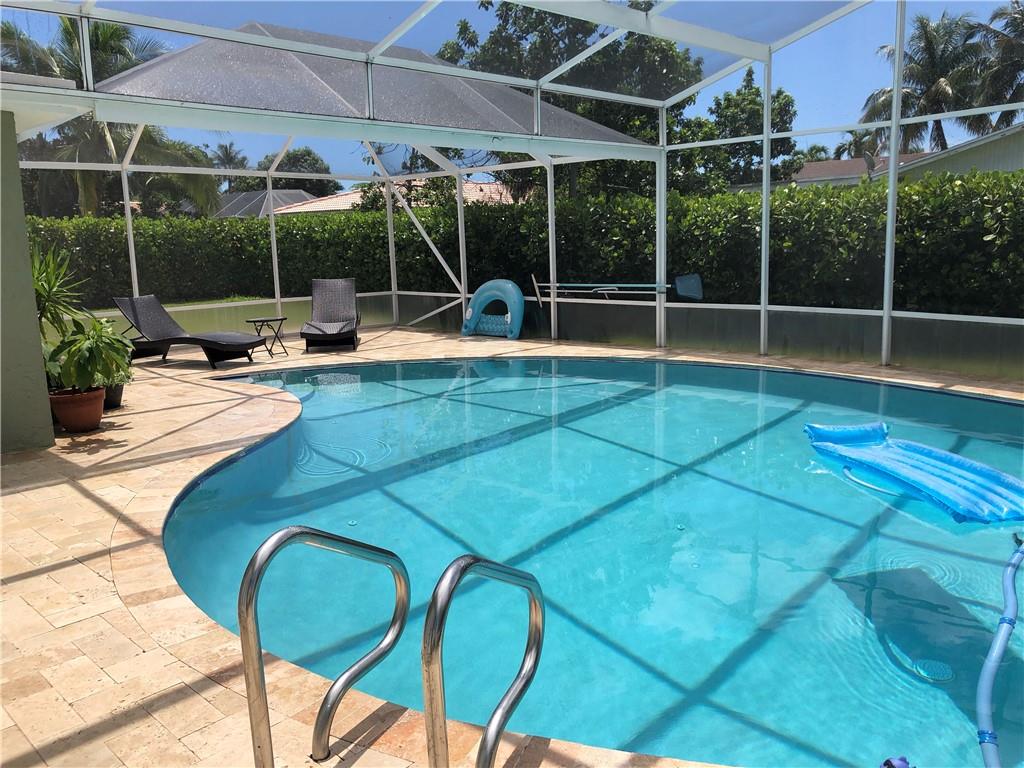 Fabulous 3/2 pool home - tile throughout except one bedroom. Great floor plan makes entertaining a breeze. Crown molding - Kitchen opens to Family room as well as dining room. Nice breakfast counter. New granite countertops & backsplash. Newer appliances. French doors leading out from Master, Guest room & Family room! New flat tile roof & gutters (Feb. 2020) All new (2018) sod, landscaping & irrigation. Oversized salt chlorinator pool with diamond brite & Marble pavers - Very private with cement wall & hedges for privacy- Interior and exterior recently painted. A/C replaced July 2014. HWH installed Nov 2019. 2CG w/ newer garage door & motor on corner lot. Great home is best school district! Sold AS IS with right to inspect
