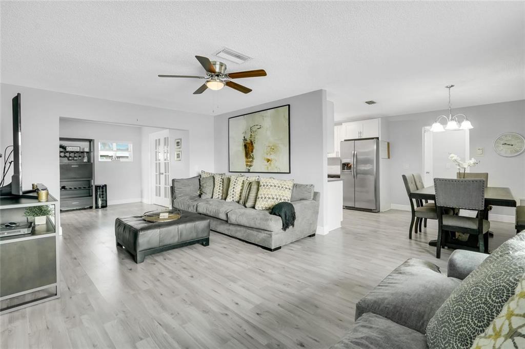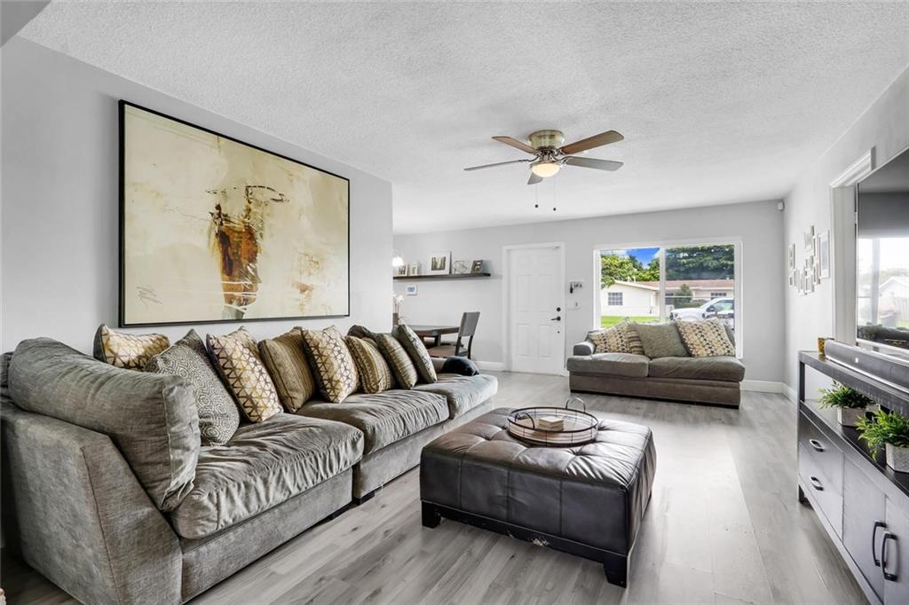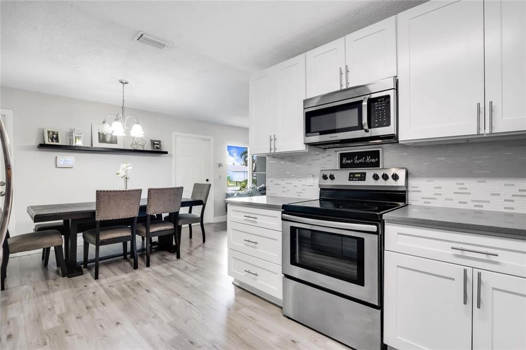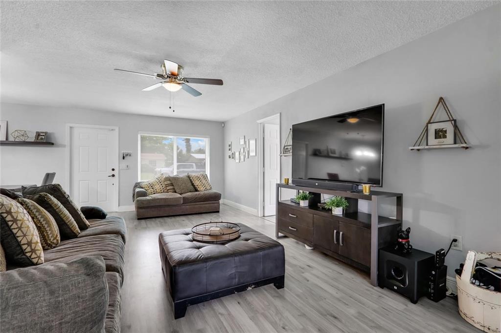 This beautifully updated 3 bedroom, 2 bath single family house is the perfect home sweet home. Cook all of your favorites in this stunning bright white kitchen while entertaining in the spacious open format living area! With plenty of storage space, this home will keep your life organized and clutter easily hidden. You'll find clean, newer floors covering the entire home. Enjoy large bedrooms with plenty of closet storage and space for all of your furniture. This home offers a huge, fenced in backyard, covered patio space and a lush fruit bearing mango tree. The large hurricane impact windows fill the structure with bright natural light and helps make hurricane season a breeze. This beautiful home is completely move-in-ready – just bring your things!